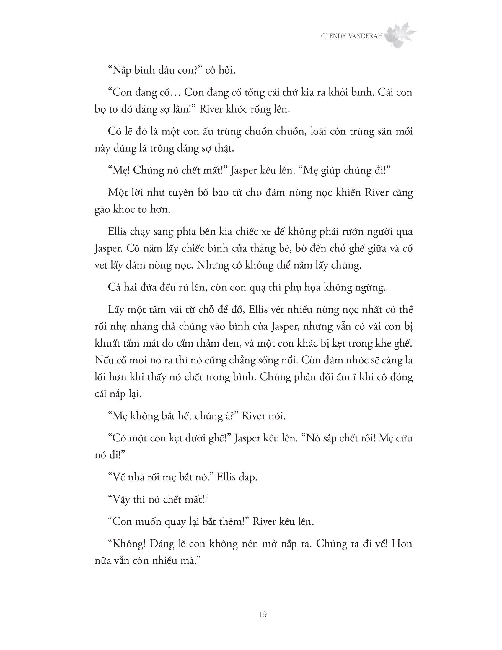 Mãi đến khi kết hôn cùng một nhà điểu học, chuyển đến Florida, cô mới quay lại công việc sáng tác. Với vốn hiểu biết sâu sắc về sinh thái học, Glendy Vanderah đã mang vẻ đẹp thiên nhiên vào từng tác phẩm của m.ình. Những trang sách do cô chấp bút cũng có nhiều phân đoạn miêu tả chi tiết và tỉ mỉ cách các nhà khoa học thực hiện nghiên cứu.