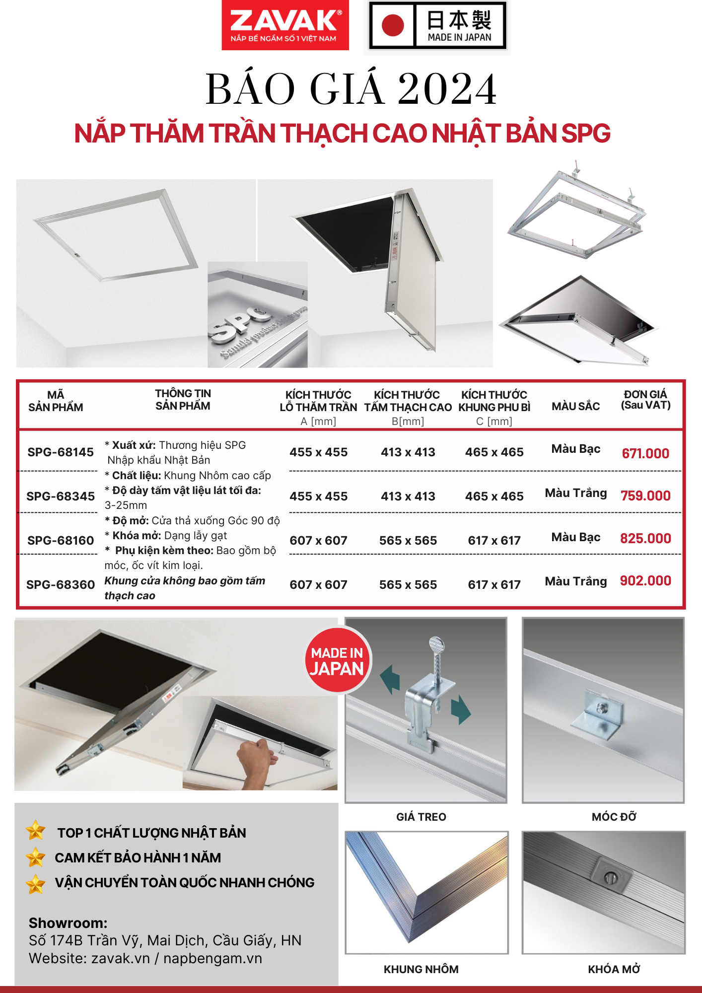 ✨Nắp cửa thăm trần thạch cao ZAVAK SPG-68345/ 45x45cm/ màu trắng