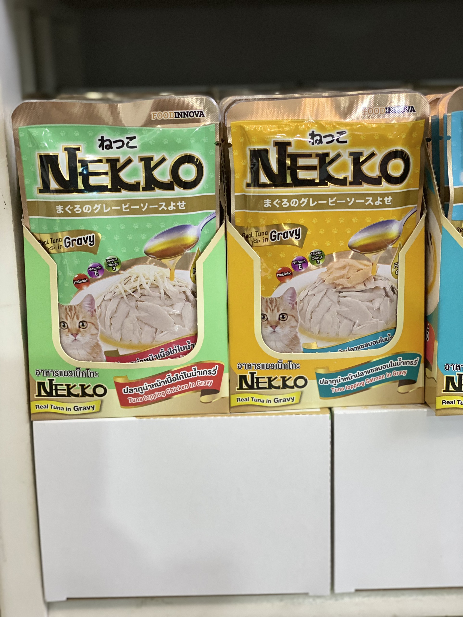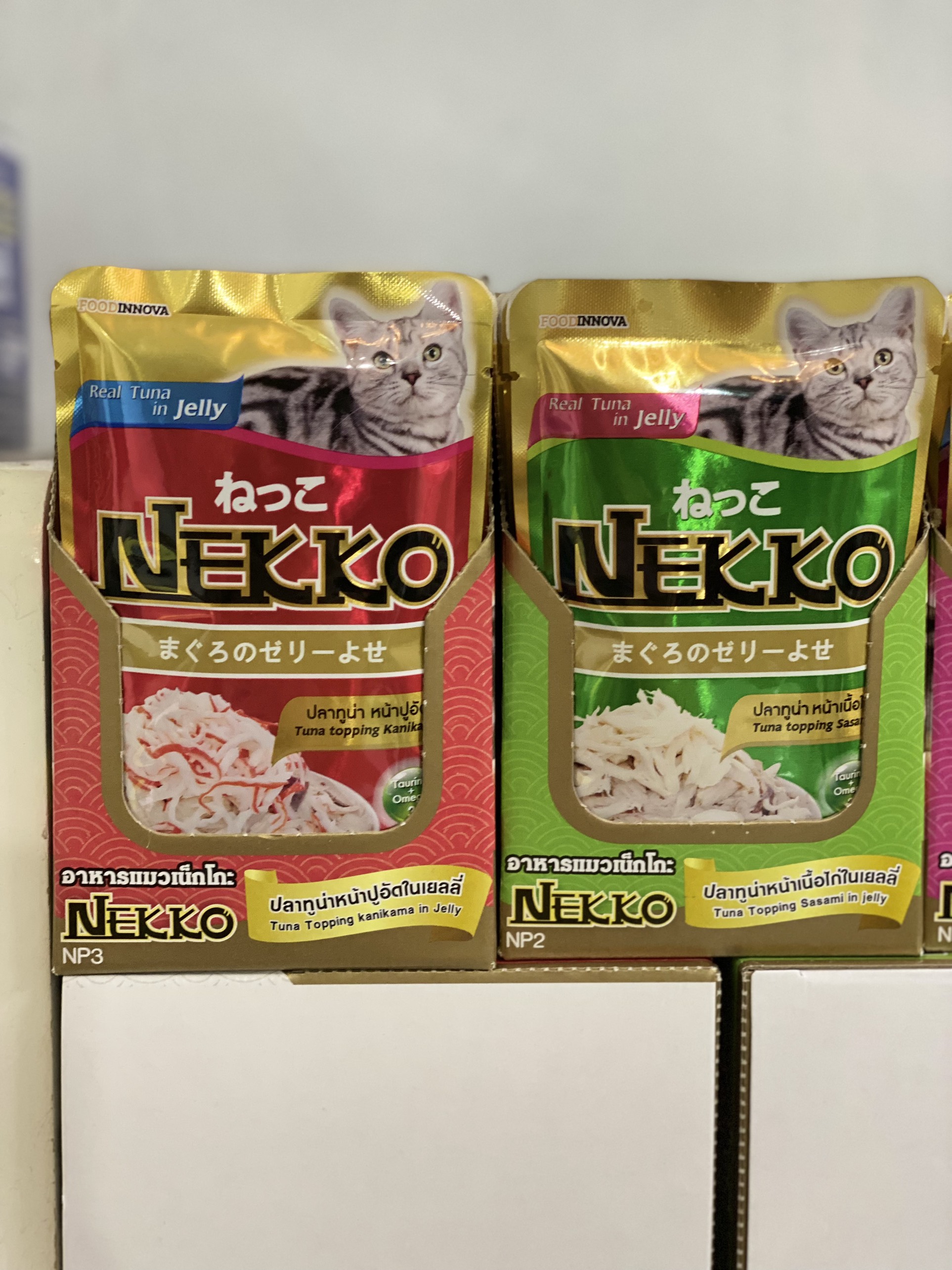 Mua tại TiktokPate Nekko là thức ăn dạng mềm cho mèo, có chứa thành phần cá thật. Sản phẩm được đảm bảo xuất xứ nguồn gốc rõ ràng. Sản phẩm được cơ quan nhà nước kiểm tra và chứng nhận đạt chất lượng khi thông quan nhập khẩu. với các thành phần: 100% thịt thăn cá ngừ nguyên chất. Bổ sung Taurine tăng cường thị lực. Omega 3 tăng cường hệ miễn dịch và phát triển não bộ. KHÔNG chất bảo quản. Đặc biệt có chứa chăm sóc da và lông mượt mà.