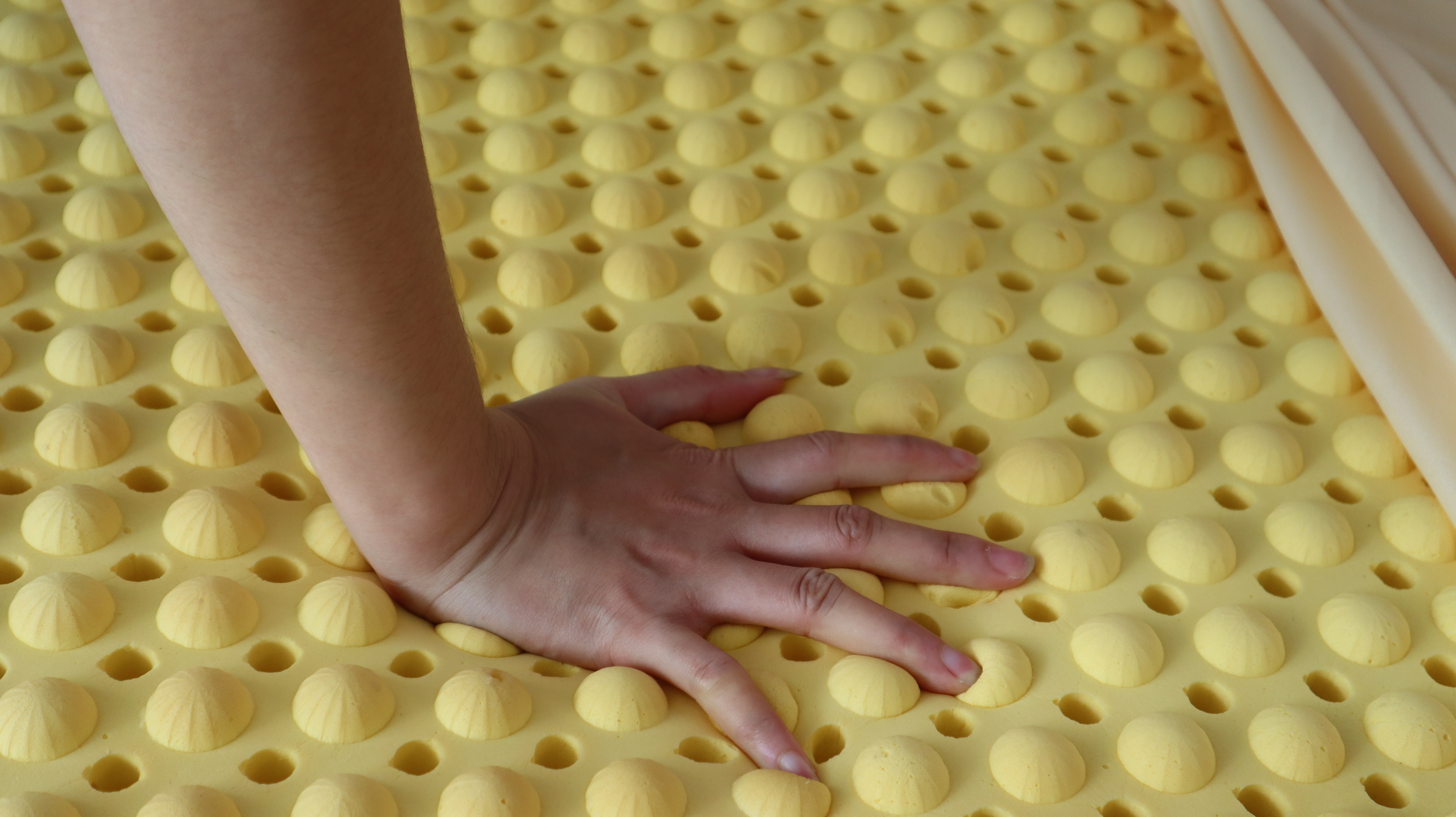- Bề mặt nệm được thiết kế hàng ngàn núm tròn có tác dụng massage và hơn 500 lỗ thoáng lớn ở mặt dưới cho phép không khí lưu thong tối đa, mang đến cho người dùng cảm giác thông thoáng mà còn như được trải nghiệm cảm giác mát xa ngay trong từng giấc ngủ.