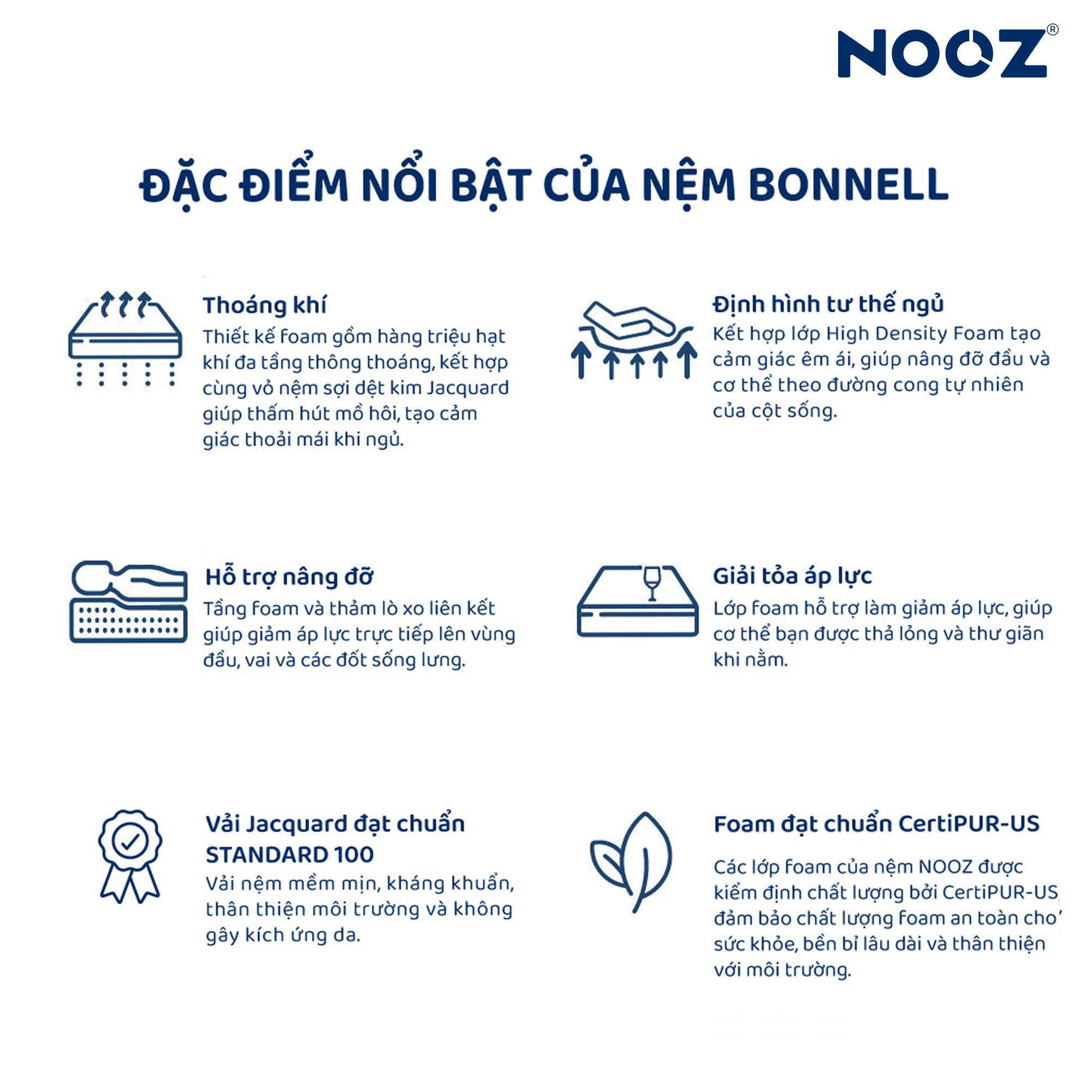 ✨Nệm Foam Lò Xo Bonnell NOOZ Home Goods Mattress lò xo liên kết cùng tầng cao su non nâng đỡ