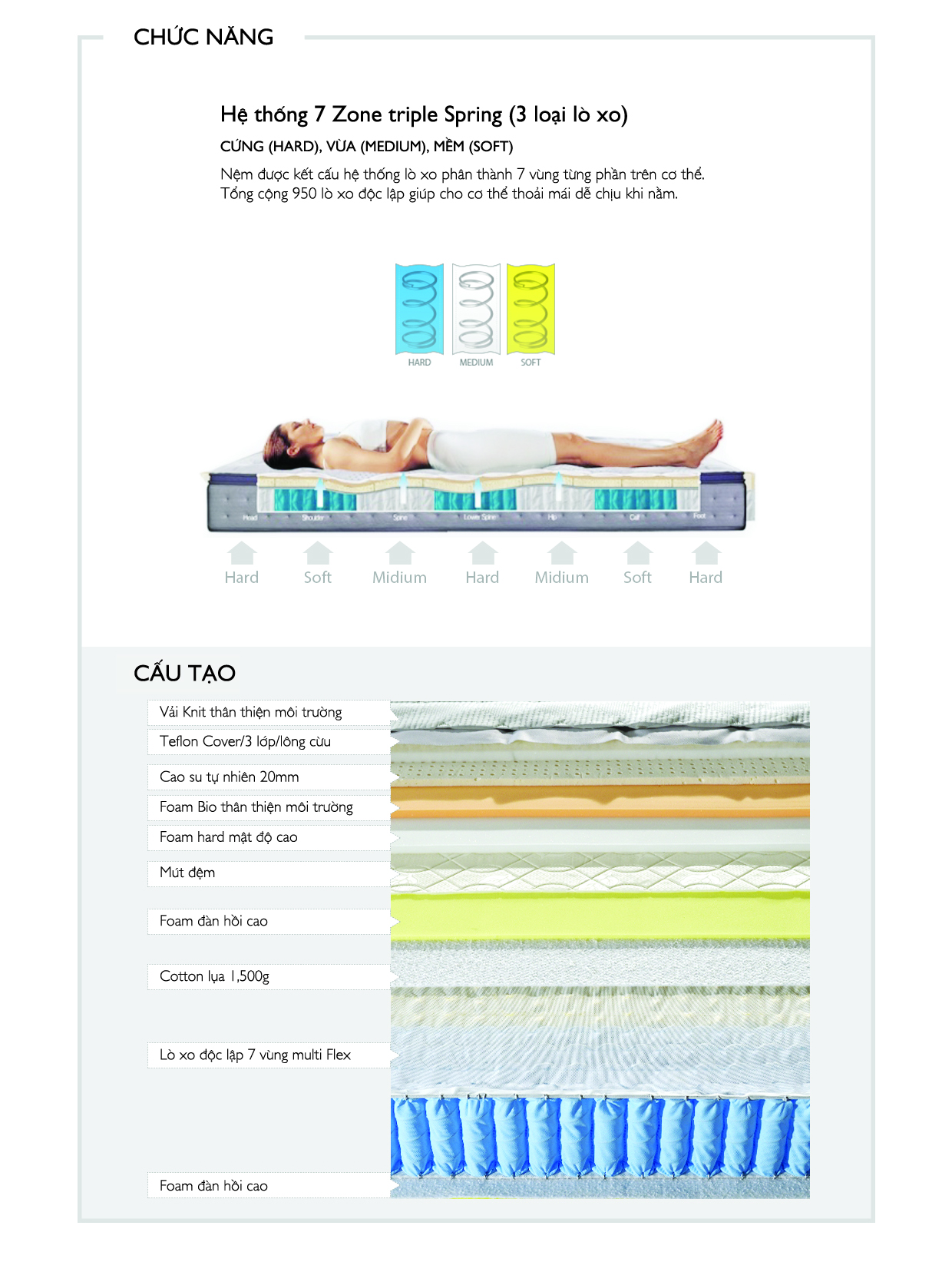 - Lò xo độc lập 7 vùng multi Flex