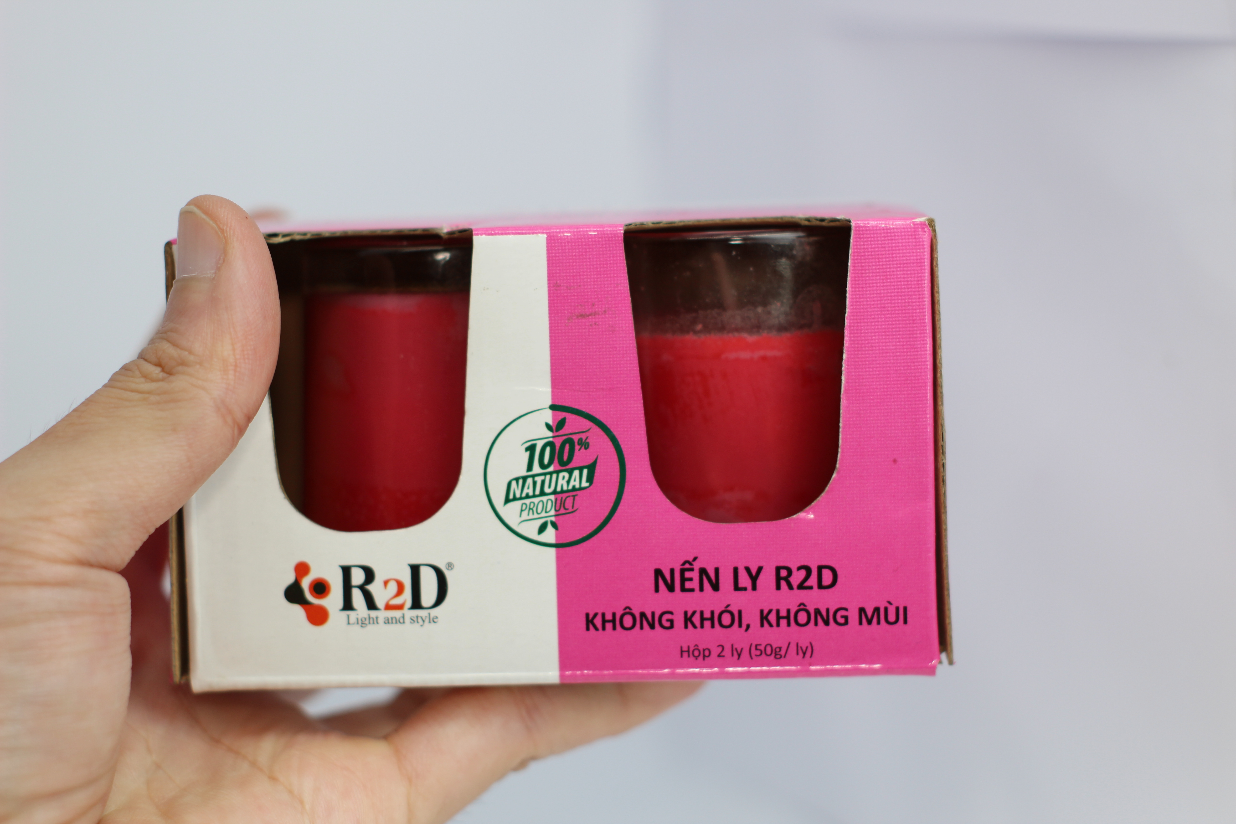 Nến Không Khói Đỏ, Nến Thắp Sáng, Đèn Cầy Ly, Chính Hãng Đến Từ Shop R2D, Làm Từ Thành Phần Tự Nhiên, Lành Tính.         - Nến Không Khói Đỏ dùng  thắp sáng, trang trí, trang trí nội thất, sân vườn, tiệc cưới.         - Nến khi đốt dễ chịu, thoải mái, không khói, không mùi. Sản phẩm được làm từ dầu cọ thực vật cháy sạch không tàn, không bị tắt trong lúc cháy. Sử dụng tốt cho những người dị ứng với mùi hương.          - Kiểu dáng nến đẹp mắt, ấn tượng tạo sự sinh động, tinh tế cho không gian của bạn, có thể dùng cho gian phòng, gia đình, nhà hàng, khách sạn…         - Là món quà ý nghĩa cho bạn bè và người thân.  Định lượng: 50 g (11.5x5.5x6.5). Thời gian đốt: 8 giờ liên tục trong điều kiện phù hợp. Thành phần: Dầu cọ, sáp dừa organic.      HƯỚNG DẪN SỬ DỤNG      - Đốt trực tiếp .      - Có thể tái sử dụng nhiều lần.       - Bảo quản nơi khô ráo thoáng mát, tránh nhiệt độ cao. -------------------------------------------------------------------------------------------------------  Xuất xứ: Việt nam.