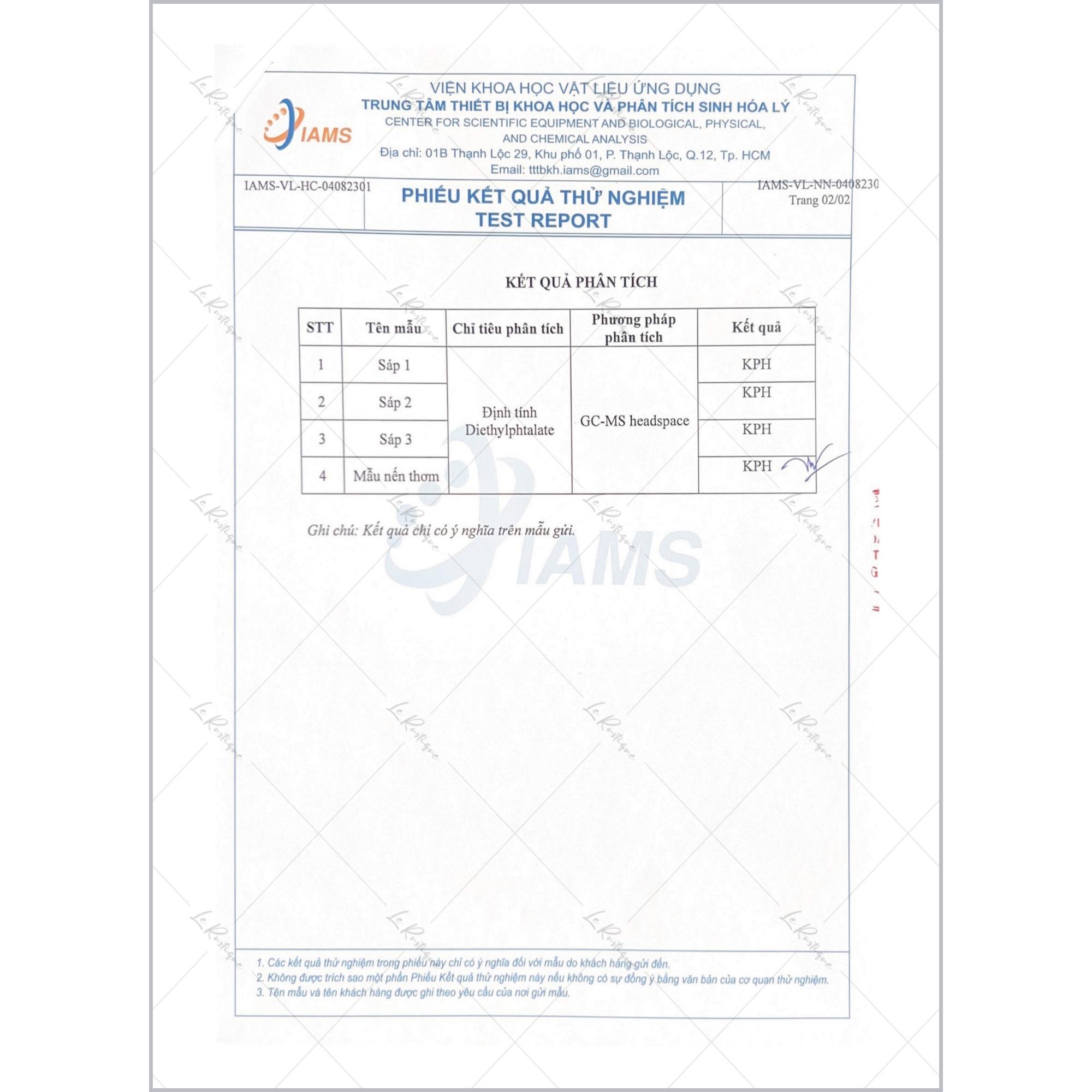 • Thành phần chính: Hỗn hợp sáp dừa, sáp ong, sáp đậu nành nguyên chất và tinh dầu.
