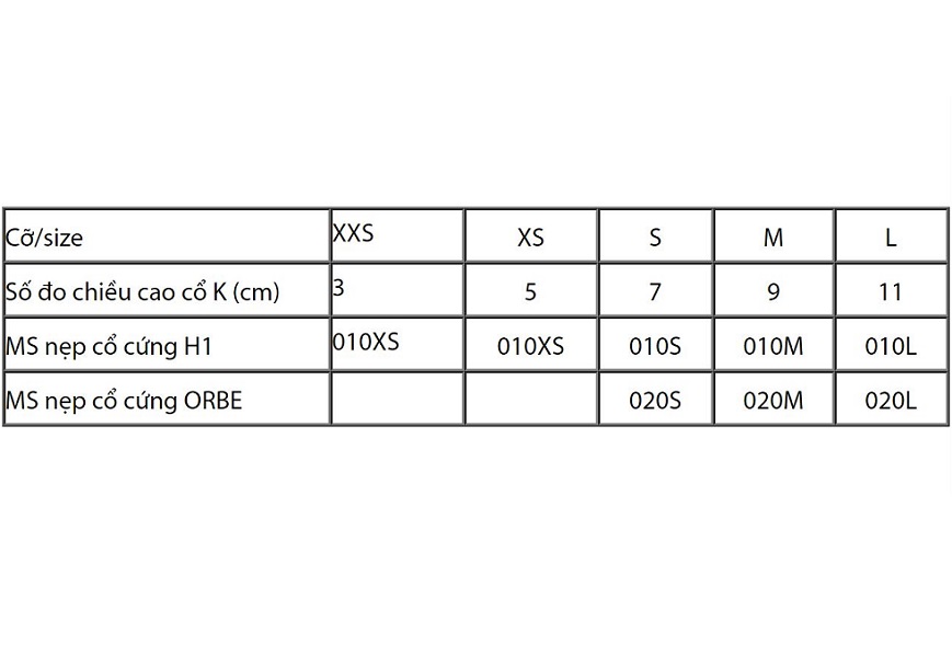 - Tên sản phẩm: Nẹp cổ cứng Orbe H1