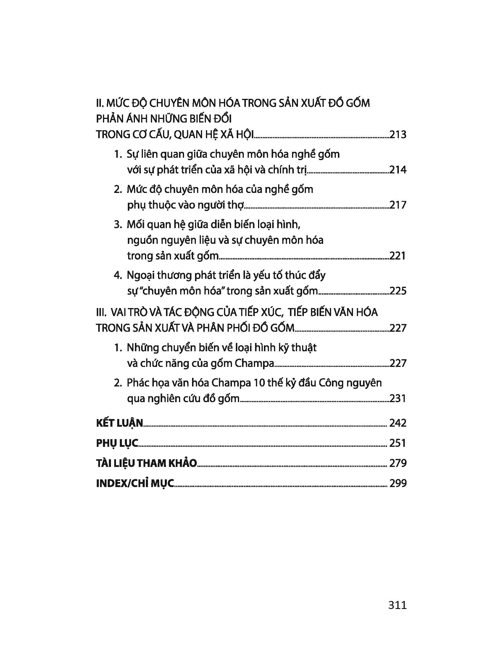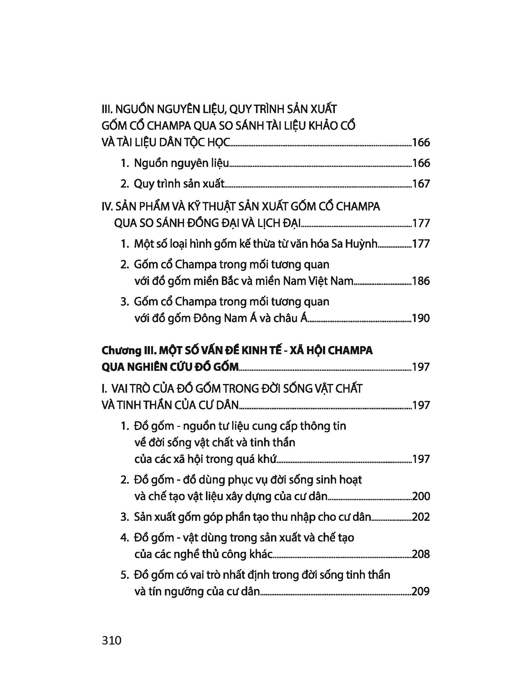 Mua tại TiktokNghiên cứu đồ gốm, nghề sản xuất gốm truyền thống của cư dân vương quốc Champa cùng việc phân tích ảnh hưởng của các mối quan hệ tiếp xúc, giao lưu văn hóa đối với sản xuất và buôn bán đồ gốm Champa trong 10 thế kỷ, làm rõ nguồn gốc, vị trí, vai trò của đồ gốm Champa, một số vấn đề liên quan đến đời sống kinh tế - xã hội của cư dân giai đoạn hình thành và phát triển nhà nước ở khu vực miền Trung Việt Nam trong suốt thiên niên kỷ I, cũng như đời sống vật chất và tinh thần của các cộng đồng dân cư Champa trong diễn trình lịch sử.