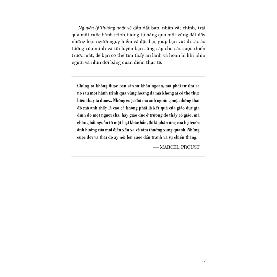 Cuốn Nguyên Lý Thường Nhật là bộ sưu tập 366 suy ngẫm chiến lược, mỗi ngày một trang, giúp bạn tiếp nhận từng chút thông thái đúc kết từ quyền lực, sự quyến rũ, cách làm chủ bản thân, chiến lược đến bản chất con người.