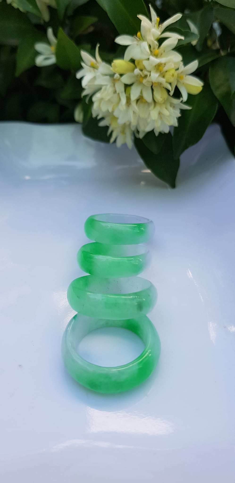 Mua tại TiktokNhẫn đeo tay nữ đá cẩm thạch tự nhiên Màu xanh lý tươi trắng bóng rất đẹp Nhẫn Ni 17mm x cao 6mm/7mm ạ