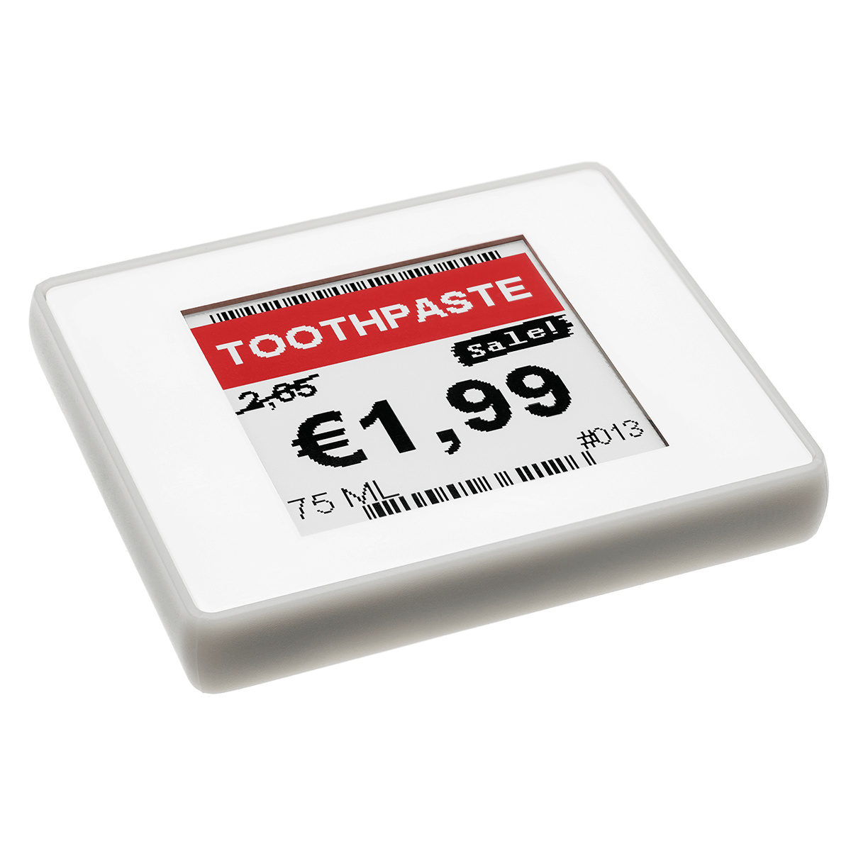 - Chứng nhận an toàn : EN 60950-1:2006 +A11:2009+ A1:2010+A12:2011+A2:2013, IEC 60950-1:2005 (2nd Edition)+Am 1:2009+Am 2:2013, EN55022: 2010, EN55024: 2010, FCC, WEEE 2012/19/EU, RoHS 2011/65 EC GIẢI PHÁP Giải pháp nhãn giá điện tử (ESL) của chúng tôi giúp loại bỏ phương pháp dán nhãn truyền thống, tiết kiệm nhân công và các chi phí phát sinh khác khi thay đổi giá cả và thông tin của sản phẩm. Bất cứ khi nào cửa hàng tiếp nhận lô hàng mới và trưng bày, nhân viên không cần phải trải qua thao tác in ấn các bảng giá bằng chất liệu giấy theo cách thông thường. Khi ứng dụng Nhãn điện tử ESL, việc thay đổi thông tin đều được thao tác trên phần mềm và hệ thống sẽ tự động cập nhật thông tin mới ngay trên bảng hiển thị.