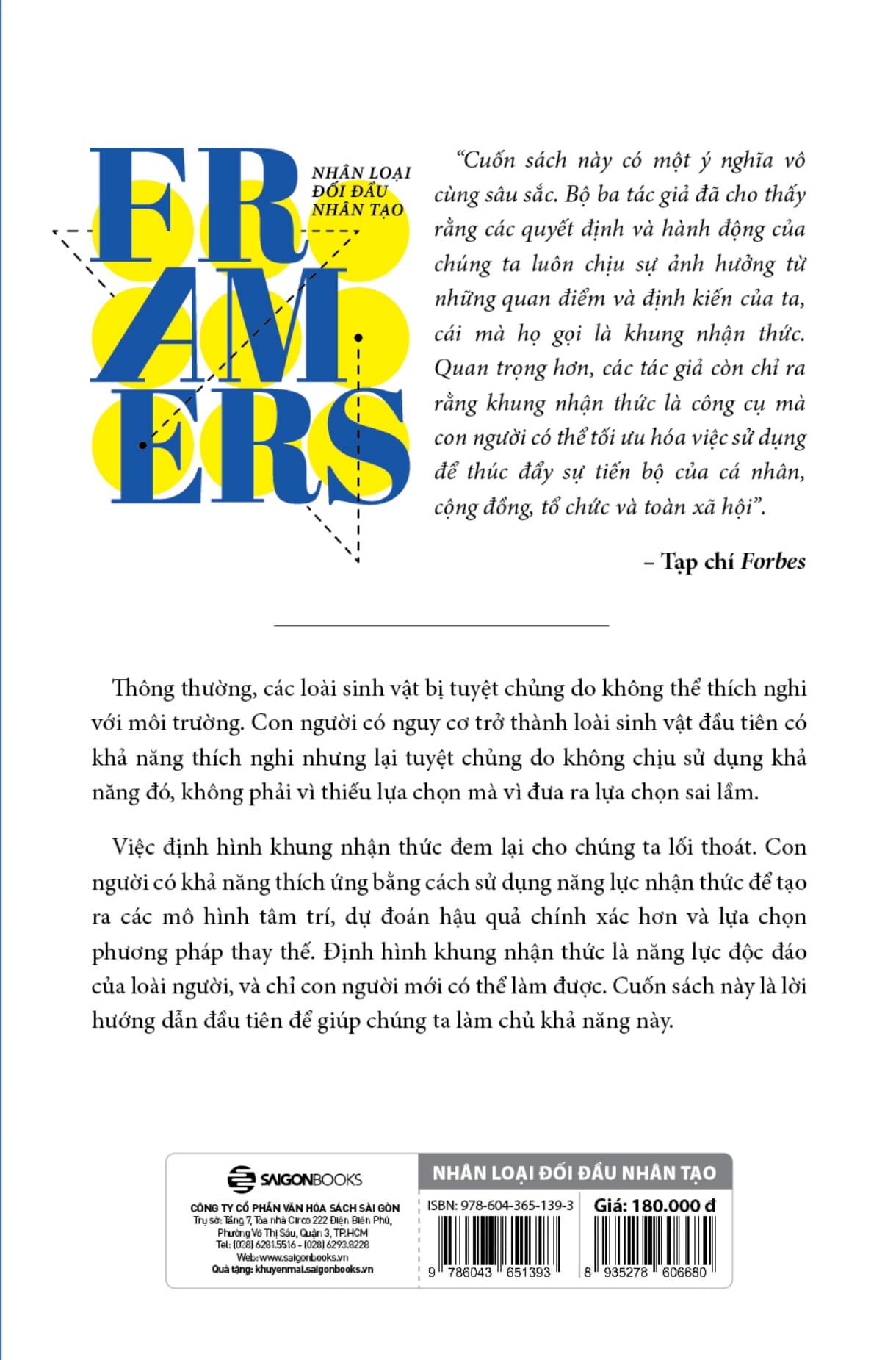 Từ đại dịch đến chủ nghĩa dân túy, AI đến ISIS, bất bình đẳng giàu nghèo đến biến đổi khí hậu, nhân loại phải đối mặt với những thách thức chưa từng có đe dọa sự tồn tại. Công cụ thiết yếu giúp nhân loại tìm ra cách tốt nhất để đi tiếp được các tác giả nổi tiếng thế giới Kenneth Cukier, Viktor Mayer-Schönberger và Francis de Véricourt định nghĩa trong cuốn sách Framers: Human Advantage in an Age of Technology and Turmoil.
