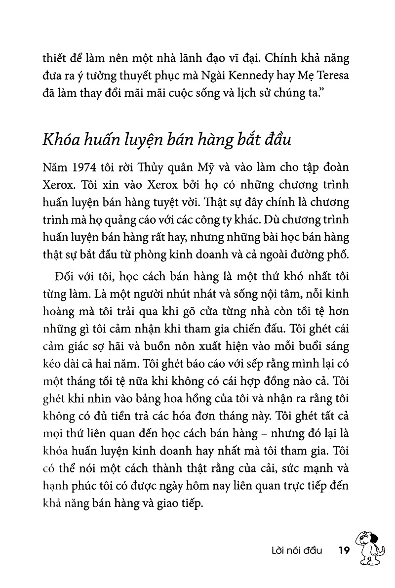 Quyển sách bán chạy thế giới này - Những Chú Chó Bán Hàng - đã truyền cảm hứng cho những chủ doanh nghiệp nhỏ, những người bán hàng trực tiếp, và doanh nhân trên toàn thế giới trong gần một thập niên qua bởi vì thông điệp rõ ràng của quyển sách: Sự khác biệt giữa có ý tưởng triệu đô với thật sự có hàng triệu đôla là khả năng bán ý tưởng, khái niệm, dịch vụ và sản phẩm của bạn. Cho dù bạn đang tìm kiếm công ăn việc làm, tuyển một đội ngũ xuất sắc và giúp họ đi đúng hướng, bán dịch vụ, tăng vốn, hay chỉ đơn giản thuyết phục bản thân rằng… bán hàng là kỹ năng số một của bạn.