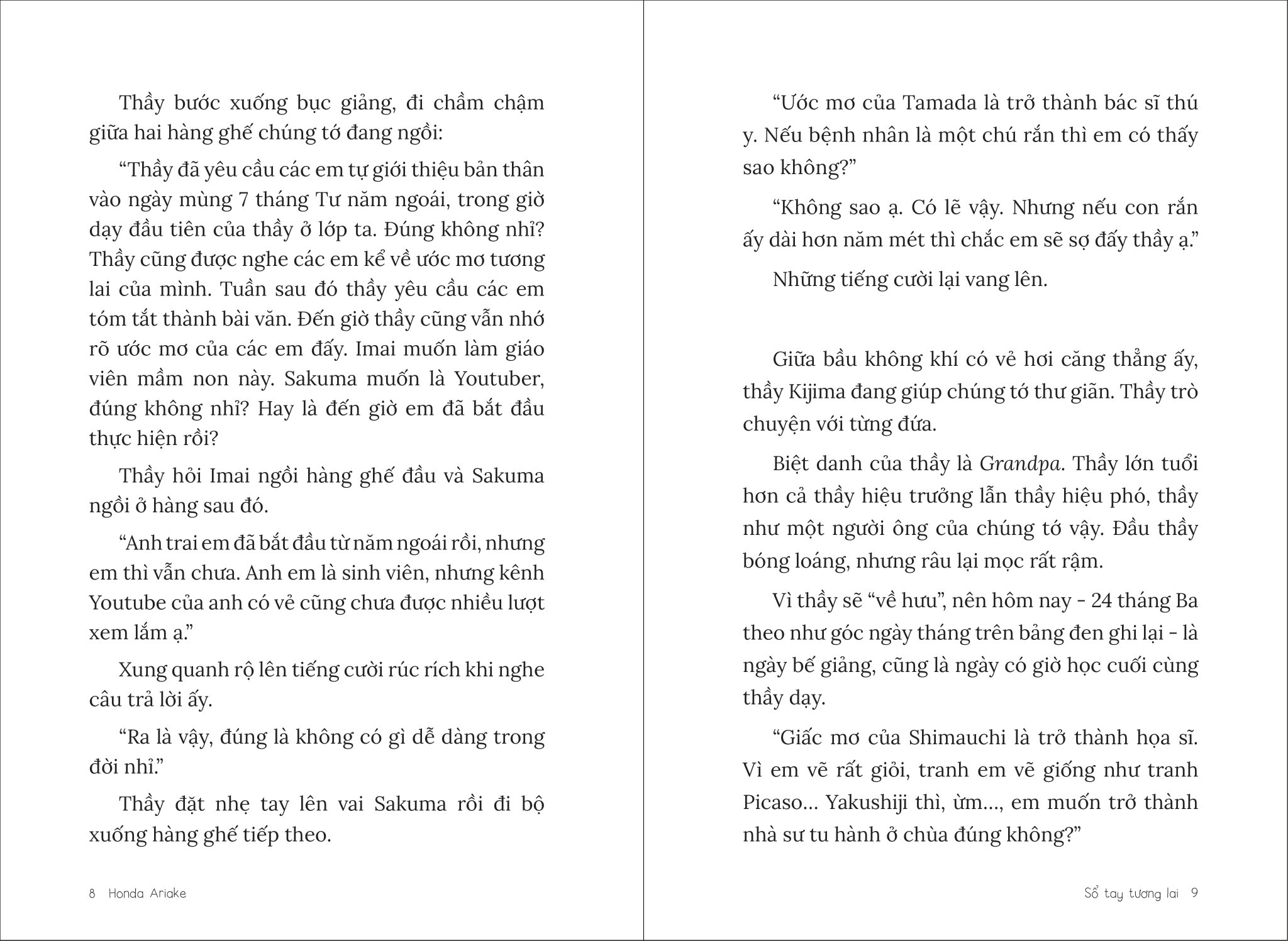 Haruto có rất nhiều cách thực hiện, nào là “Sổ tay tương lai”, “Bảng triển khai lí luận” hay “Kịch bản tương lai hai tầng”, rồi cả nhật kí tuần, đến mức ai cũng lo lắng “Liệu cậu ấy có ôm đồm quá không?” Nếu đọc cuốn sách này mà bạn cảm thấy có hứng thú với một thứ bất kì nào trong các thứ ấy, bạn hãy thử làm theo xem thế nào nhé. Tôi tin, dần dần bạn sẽ tìm ra mẫu mục tiêu dễ viết với mình, và hãy làm “Sổ tay tương lai” theo phong cách riêng của bạn nhé.