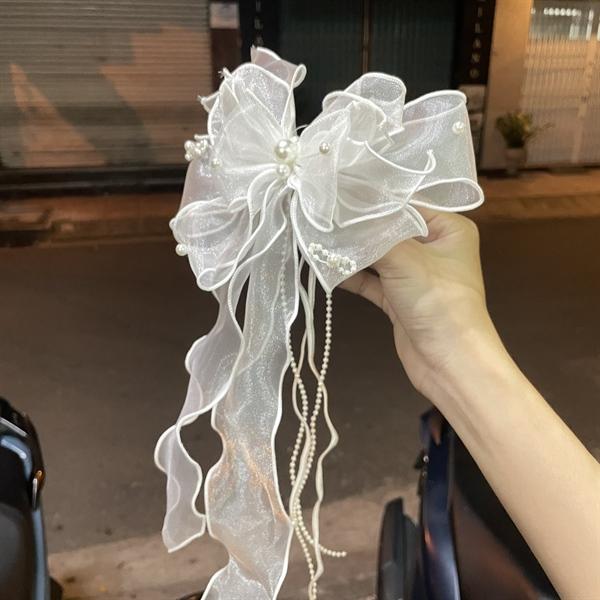 ✨Nơ cài tóc vải voan nhiều lớp đính nơ hạt trai mẫu mới t12/2023