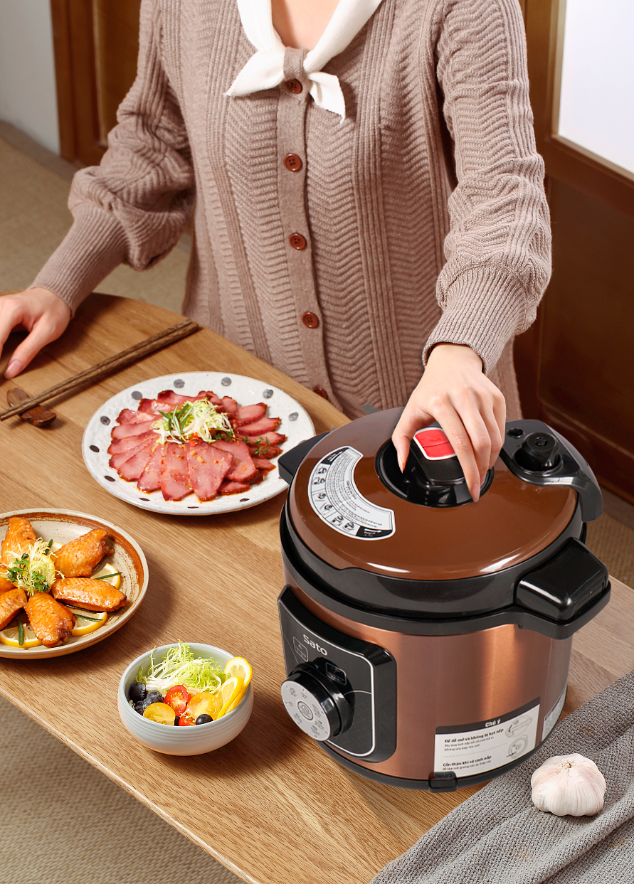 Sản phẩm kết hợp giữa nồi áp suất, bếp điện và nồi om. Điểm đặc biệt của nồi là hệ thống lập trình kiểm soát nhiệt độ và áp suất. Nồi được thiết kế hiện