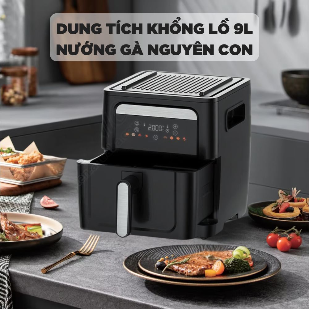 Nồi chiên không dầu Bluestone 9 lít AFB-5886 - Công suất : 1800W - Dung tích : 9 Lít - Bảng điều khiển : Cảm ứng ( Tiếng Việt ) - Thiết kế mặt trước