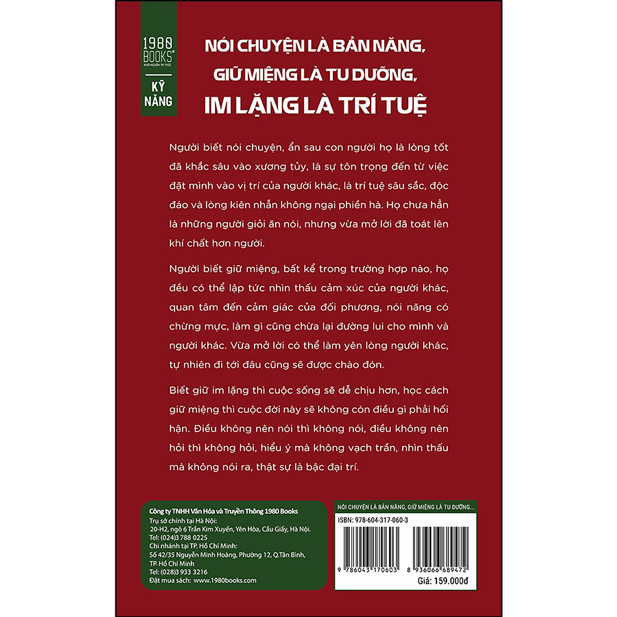 Nội dung quyển sách này xoay quanh hai vấn đề đó là “biết cách nói chuyện” và “biết giữ miệng”, thông qua 12 chương sách nói rõ cách nói chuyện với những người khác nhau, cách nói chuyện trong những trường hợp khác nhau, làm thế nào để nắm vững những kỹ năng và chừng mực để nói chuyện cho khôn khéo, những người không giỏi ăn nói làm cách nào mới có thể nói được những lời thích hợp với đúng người và đúng thời điểm, để có thể ứng phó với những trường hợp khác nhau trong giao tiếp.