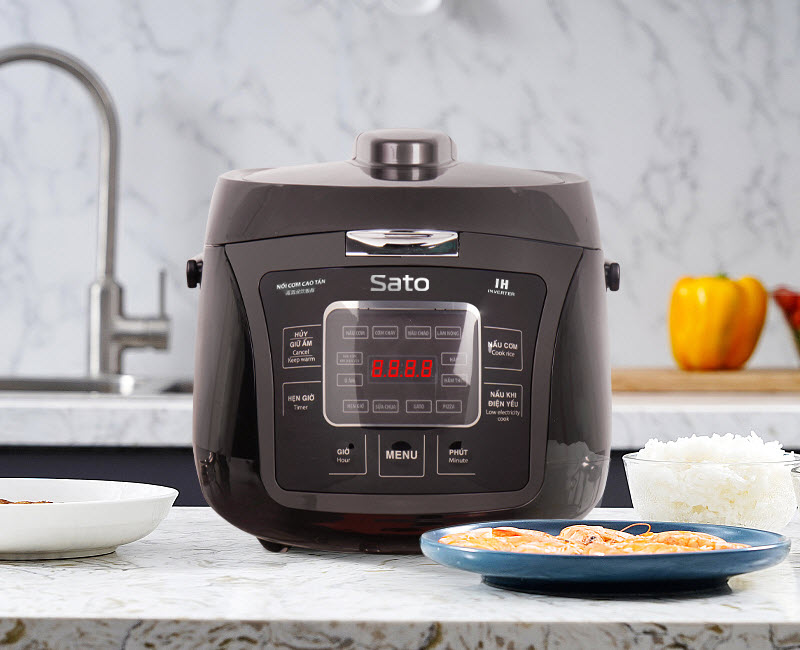 Mua tại TiktokĐặc điểm nổi bật Dung tích: 1,8 lít phù hợp cho gia đình từ 4 - 6 người ăn. Lòng nồi dày giữ nhiệt tốt, phủ chống dính cao cấp, an toàn sức khỏe. Đa chức năng: nấu cơm, nấu cháo, nấu súp, làm bánh, hấp, hâm nó Công nghệ nấu Cao Tần tỏa nhiệt đa chiều 360 °C giúp cơm chín đều và ngon hơn. Bảng điều khiển Tiếng Việt, màn hình LED hiển thị, phím bấm tiện dụng. Thiết kế sang trọng hiện đại, màu sắc tinh tế. Công nghệ Nhật Bản - Sản xuất tại Việt Nam! THÔNG TIN THƯƠNG HIỆU SATO :