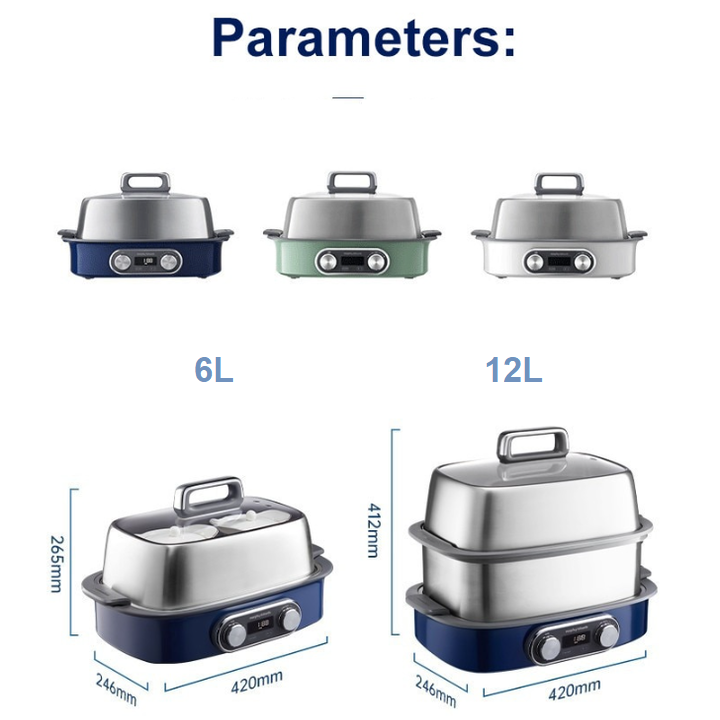 Một thiết bị đa năng: vừa có thể ăn lẩu lại vừa có thể hấp. Đặc biệt, hấp ăn ngay tại bàn. Công suất: 1500W Dung tích: 21L (4L nồi lẩu) Màu sắc: Xanh /