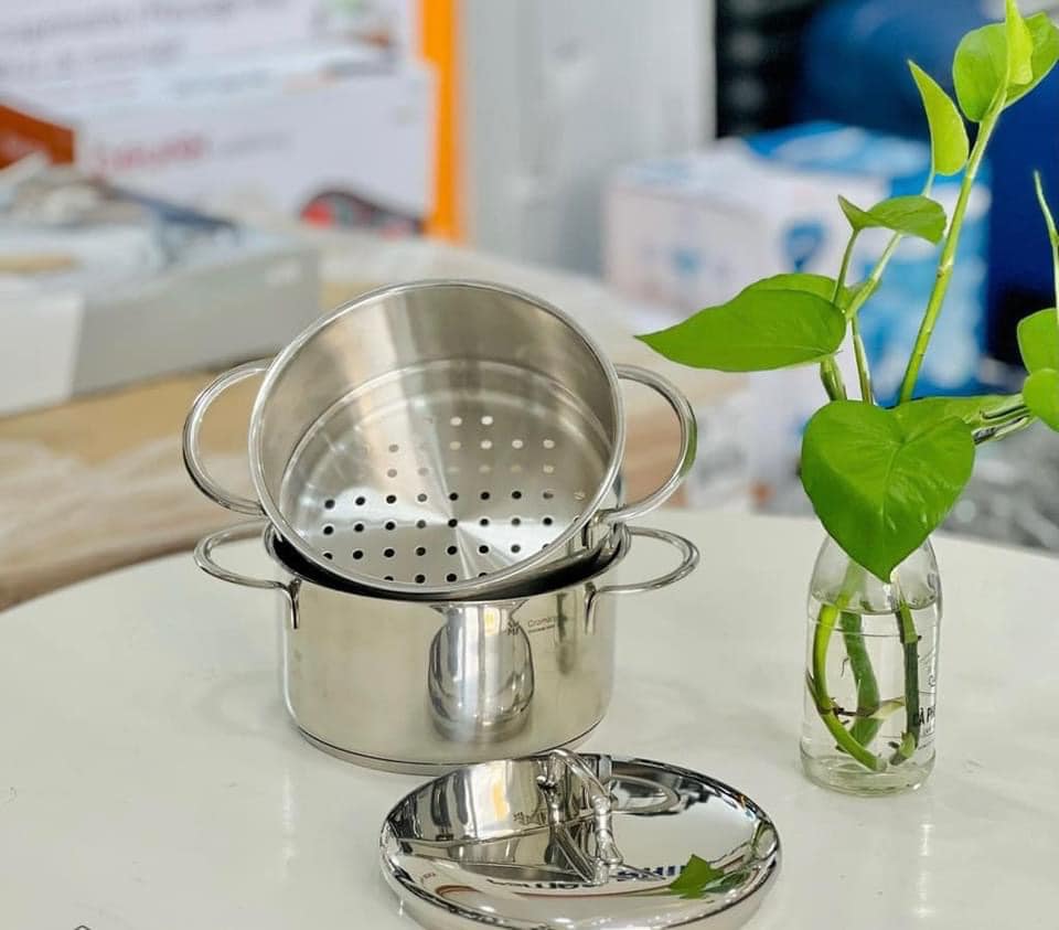Nồi hấp được làm từ chất liệu chất lượng cao, có vẻ ngoài bóng bẩy và sang trọng.