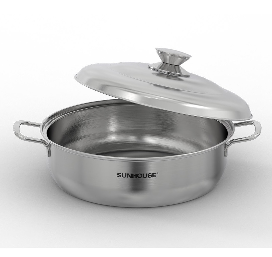 Nồi lẩu inox 1 đáy SUNHOUSE SHG26L có thiết kế vung nồi và tay cầm cũng bằng chất liệu Inox cao cấp chắc chắn và chịu nhiệt tốt, thuận tiện và an toàn trong quá trình sử dụng.