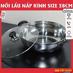 Thiết kế nhã nhặn đẹp mắt - Nắp kính dày trong suốt - Chất liệu Inox cao cấp - Đường kính 28 cm - Thiết kế tay cầm tiện lợi Nồi lẩu Inox 28cm có