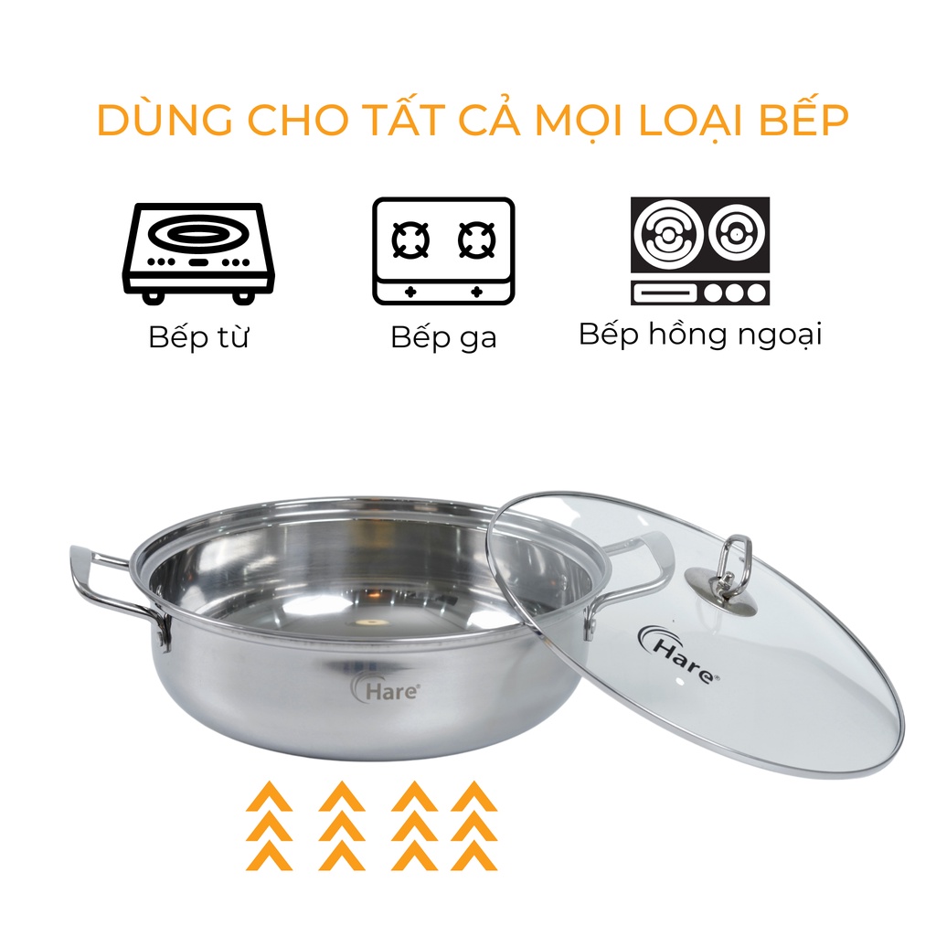 ✨Nồi lẩu inox đáy từ HR - HP2801 (28cm) - Thương hiệu Hare - lỗi 1 đổi 1
