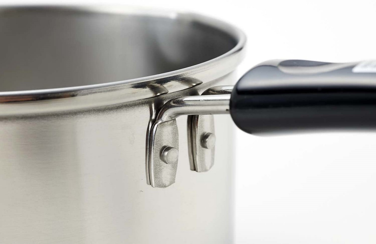 Rìa rót rộng để rót không bị nhỏ giọt. Có thể xếp chồng lên nhau - để lưu trữ tiết kiệm không gian. Nồi WMF dùng được cho mọi loại bếp, kể cả bếp từ.