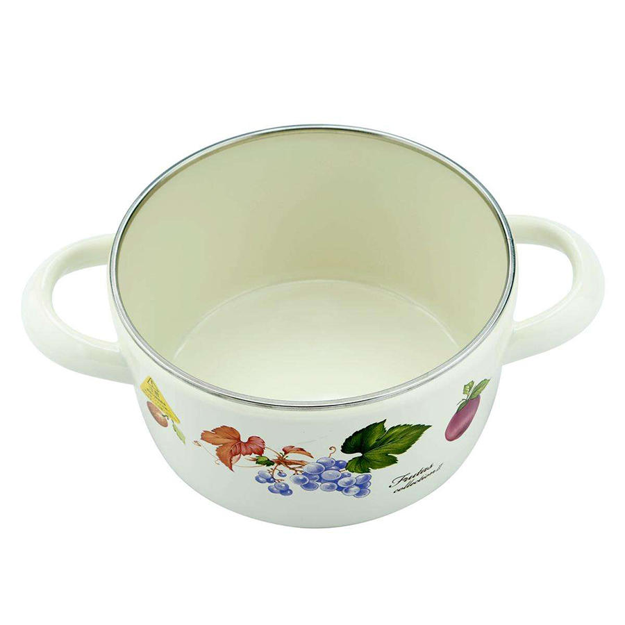 Thiết kế sang trọng, quai cầm và núm nắp chắc chắn Nồi Tráng Men Hoa Văn Trái Cây Sử Dụng Bếp Từ Fujihoro FRV-16W sở hữu thiết kế tinh tế với màu sắc và họa tiết