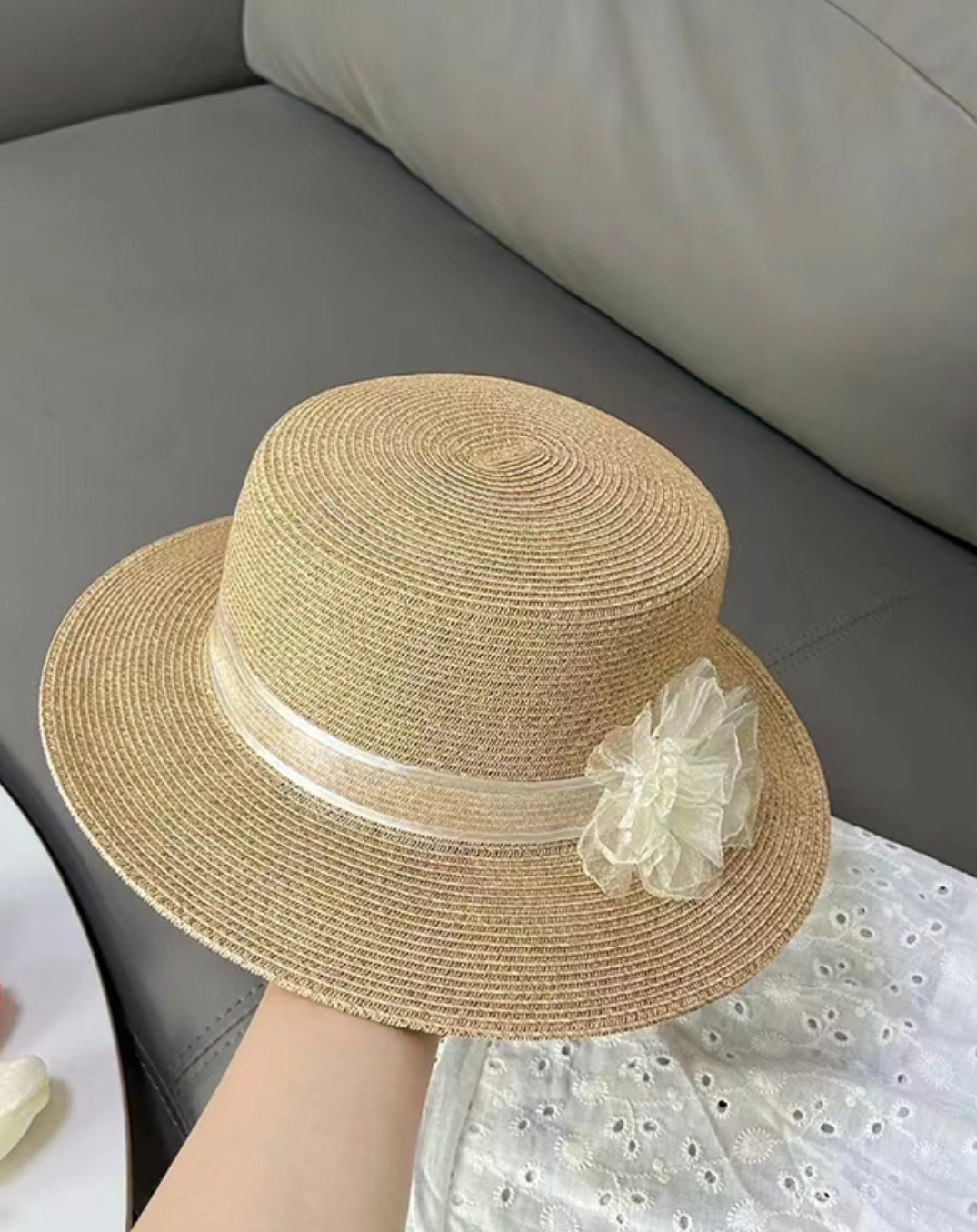 Mũ cói rơm vành phẳng nữ mùa hè phiên bản Hàn Quốc chống nắng UV cho kỳ nghỉ Nón đi biển Paris thời trang hàng đầu Pháp Chất liệu cói