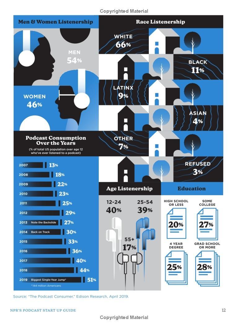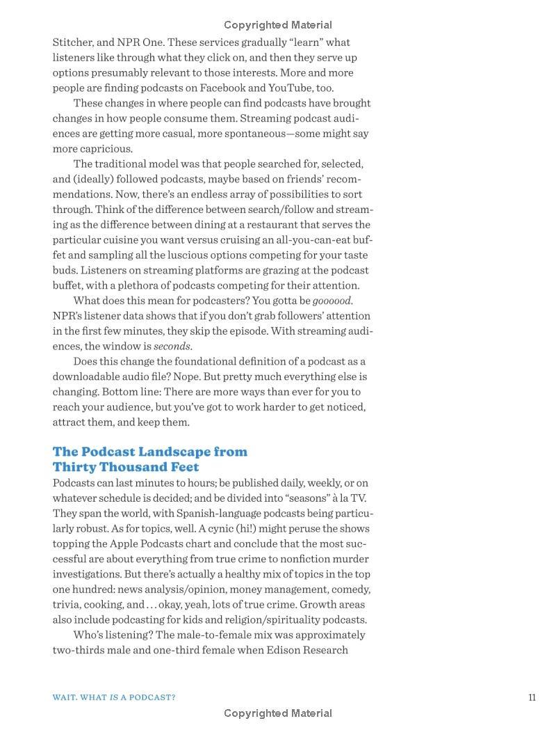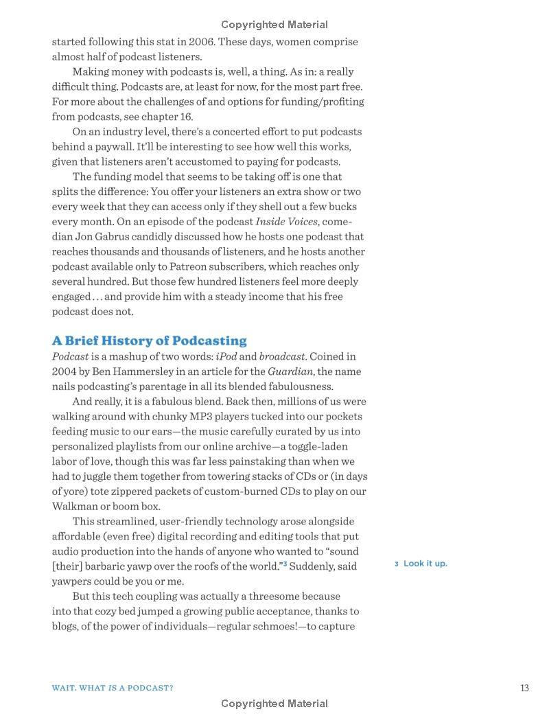 In NPR's Podcast Start Up Guide, NPR, the #1 podcast publisher in the U.S., draws on its extensive educational materials, unparalleled experience, and army of podcasting talent--from recognizable hosts such as Gene Demby (Code Switch), Linda Holmes (Pop Culture Happy Hour), and Yowei Shaw (Invisibilia), to indispensable behind-the-scenes players such as producers, engineers, and editors--to guide aspiring podcasters through the conception, creation, and launch of a podcast.
