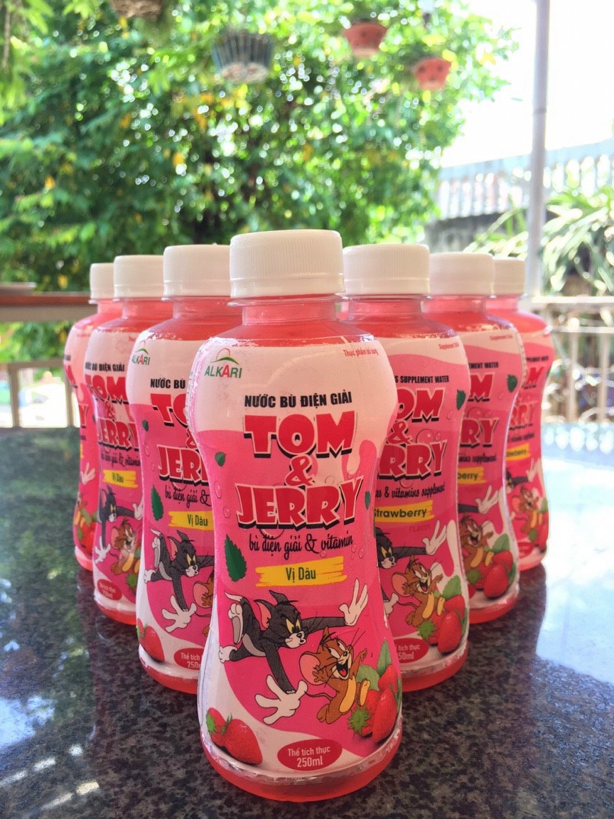 TOM & JERRY  - NƯỚC GIẢI KHÁT BÙ ĐIỆN GIẢI, TĂNG ĐỀ KHÁNG. SẢN XUẤT THEO TIÊU CHUẨN QUỐC TẾ, NHÀ MÁY HÀNG ĐẦU VIỆT NAM CÔNG NGHỆ NHẬP KHẨU TỪ NHẬT BẢN.  Để đáp ứng nhu cầu rộng lớn của thị trường, Công ty Việt Nhật Alkari cần tuyển đối tác đại lý/ sỉ Nước bù điện giải Tom &Jerry tại Hà Nội, Hải Phòng, Đà Nẵng, Thành Phố Hồ Chí Minh và các tỉnh thành trên cả nước. Hợp tác cùng chúng tôi bạn được gì ?  Sản phẩm chất lượng cao,quy trình sản xuất đạt tiêu chuẩn quốc tế ISO 22000:2018 và ISO-13485:2016. Hàng thiết yếu chống dịch ai ai cũng cần (Giải khát, dự phòng ốm sốt, mệt mỏi, sốt sau tiêm vaccine, nắng nóng, lao động, học tập căng thẳng, ra mồ hôi...) Giao hàng nhanh nhất, giá tốt nhất, công suất nhà máy lớn Hỗ trợ tư vấn, chốt đơn, chăm sóc sau bán hàng Phiếu kiểm nghiệm kèm theo và date xa Sản phẩm thơm ngon, dễ bán, uy tín chất lượng quốc tế.    TOM & JERRY NƯỚC BÙ ĐIỆN GIẢI CHẤT LƯỢNG SỐ 1 Quy cách: Thùng 24 chai, chai 250ml.