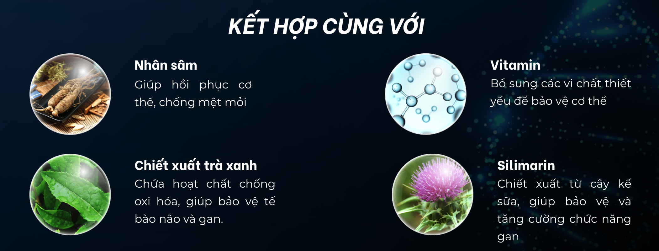 Giúp tăng cường chức năng gan Thanh nhiệt, mát gan, giải độc gan Hỗ trợ giảm các triệu chứng khó chịu sau khi sử dụng đồ uống chứa cồn - Tập trung được vào việc