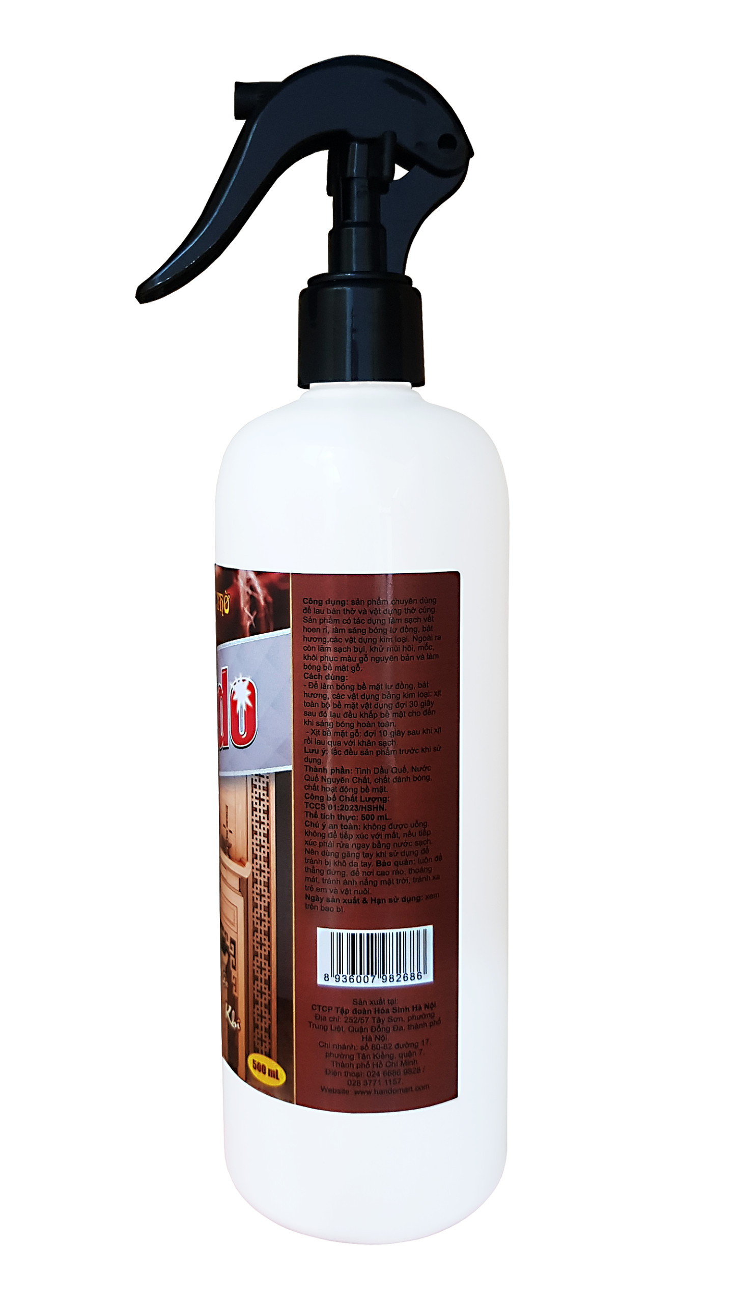 - Dùng để lau bàn thờ và vật dụng thờ cúng, có tác dụng làm sạch vết hoen rỉ, làm sáng bóng lư đồng, bát hương, các vật dụng kim loại, ngoài ra còn làm sạch bụi khử mùi hôi, mốc, phục hồi và làm sáng bóng bề mặt gỗ. Hướng dẫn sử dụng : - Để làm bóng bề mặt lư đồng, bát hương, các vật dụng bằng kim loại, xịt toàn bộ bề mặt vật dụng đợi 30s sau đó lau đều khắp bề mặt cho đến khi sáng bóng hoàn toán.