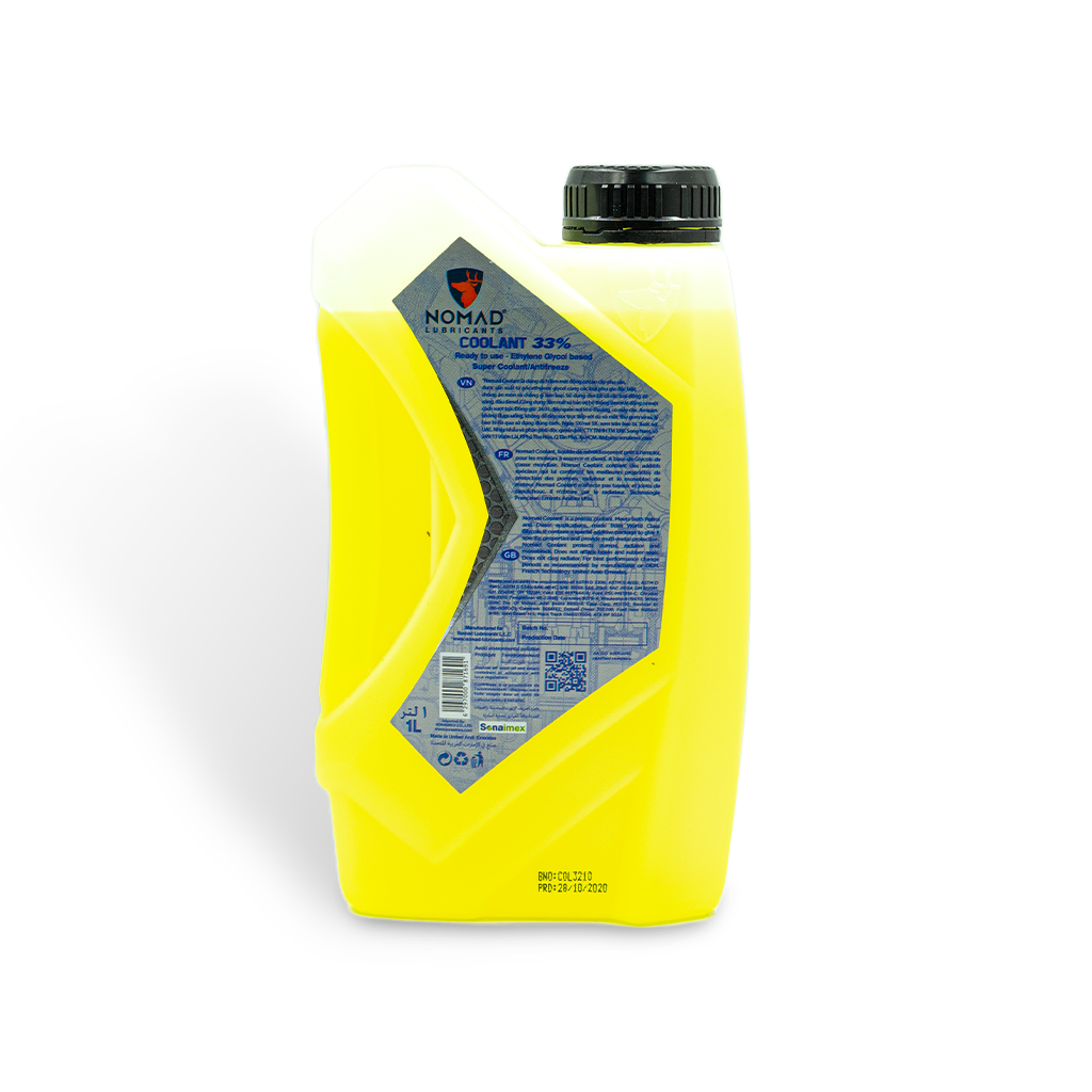Nước làm mát NOMAD COOLANT 33% (-180C) được sản xuất từ gốc Ethylene Glycol cùng các phụ gia cao cấp, giúp nâng cao khả năng tản nhiệt cho động cơ và hạ thấp nhiệt độ đóng băng xuống -180C so với Ethylene Glycol nguyên chất (nhiệt độ đóng băng tại -120C). Đặc biệt, dung dịch làm mát NOMAD có chứa phụ gia làm giảm sự ăn mòn khi động cơ hoạt động và chống đóng cặn két nước.