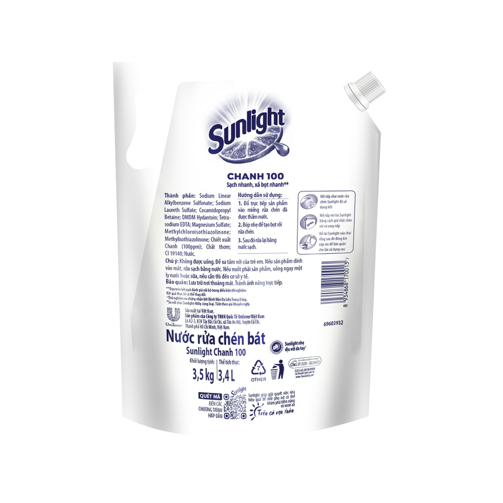 Nước rửa chén Sunlight Chanh 100 - Sạch nhanh, Xả bọt nhanh, để bạn vươn xa Trên cả vẹn toàn