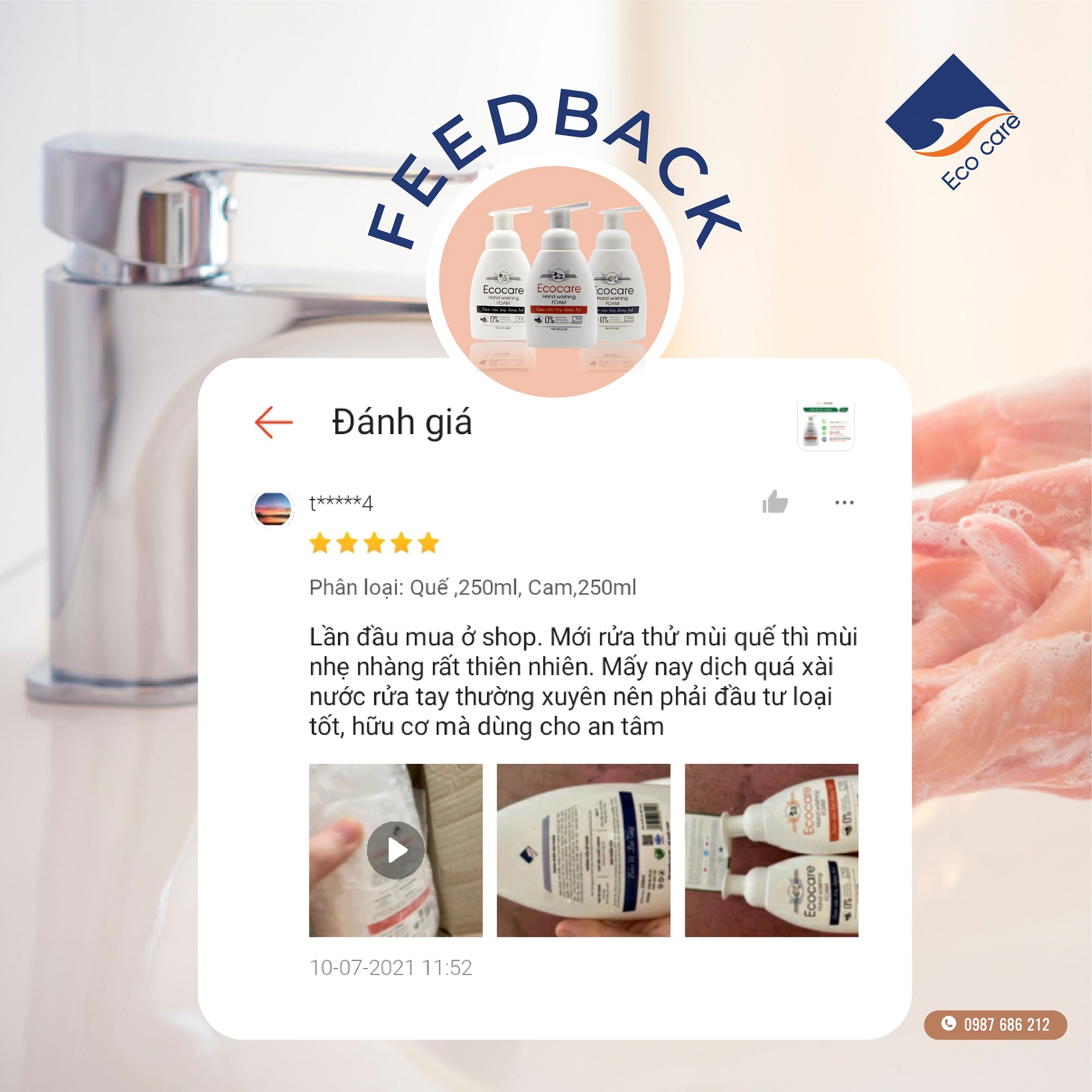 • Trước tiên, Công ty Ecocare xin cảm ơn Quý Khách hàng đã tin tưởng lựa chọn sản phẩm Nước rửa tay tạo bọt Hữu cơ - Nước rửa tay diệt khuẩn tinh dầu thiên nhiên Ecocare