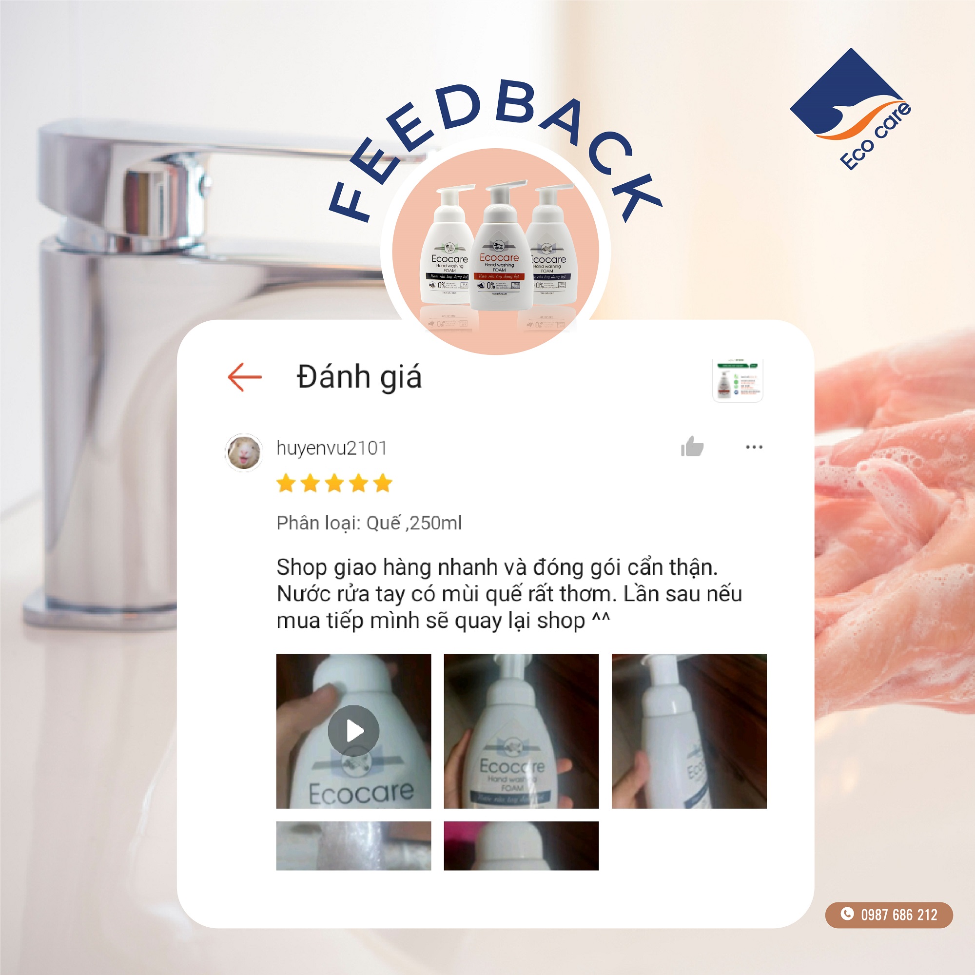 • Trước tiên, Công ty CP Ecocare Việt Nam xin cảm ơn Quý Khách hàng đã tin tưởng lựa chọn sản phẩm Nước rửa tay tạo bọt Hữu cơ - Nước rửa tay diệt khuẩn tinh dầu thiên nhiên Ecocare