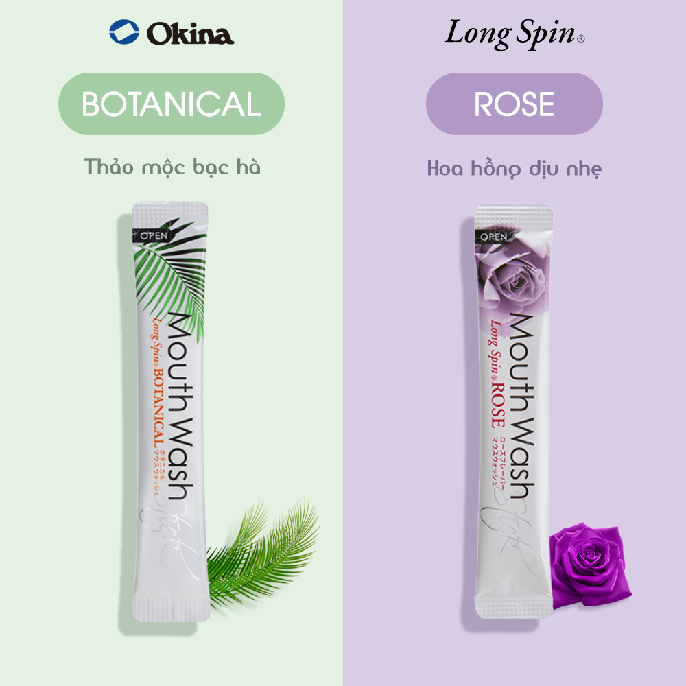 + Nước súc miệng Long Spin dạng thanh đến từ công ty chuyên về sản phẩm chăm sóc răng miệng Nhật Bản OKINA. Sản phẩm nước súc miệng sử dụng thành phần thảo mộc và