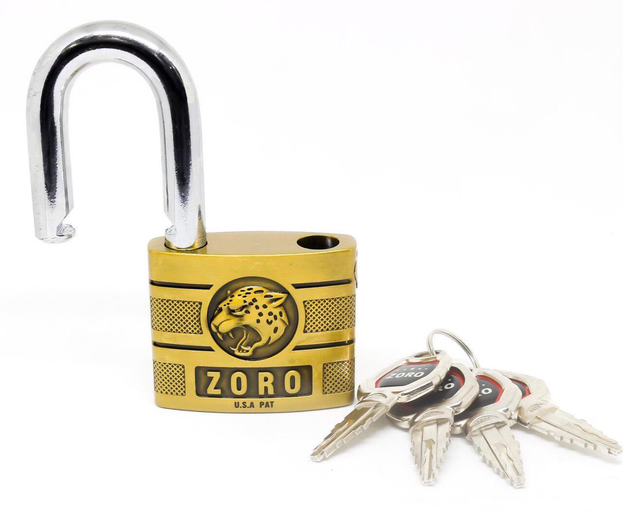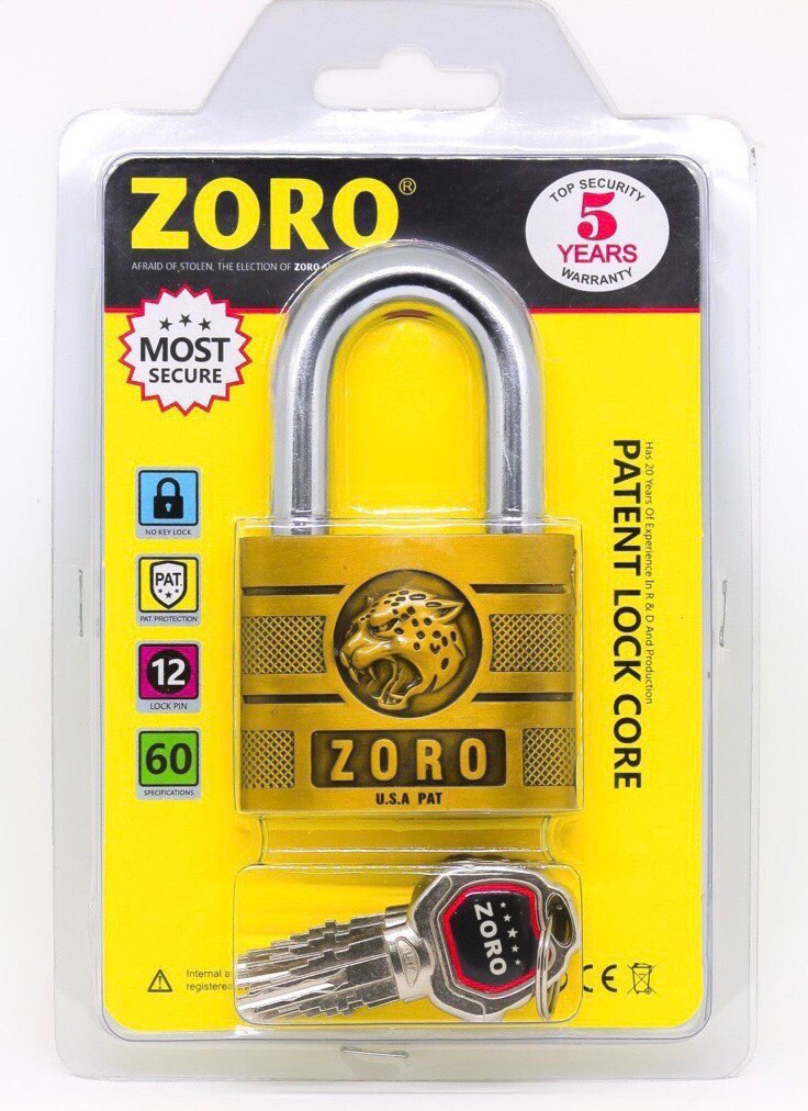 Ổ KHÓA ZORO 5 PHÂN CHÌA MUỖNG CÓ ỐP CHỐNG CẮT BẢO VỆ CÀNG • Chất liệu: Hợp kim sắt, lõi đồng thau, chịu lực tốt cứng và chắc Size khóa ngang 5cm cao 7,5cm,