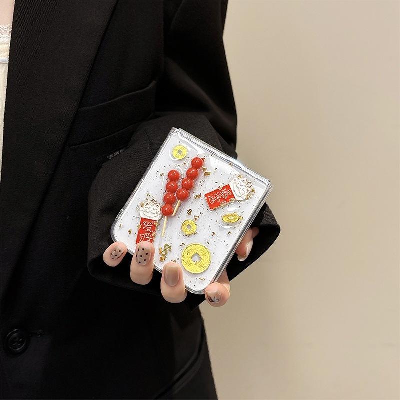 Ốp Lưng Phong Cách Nhẹ Nhàng Kèm Phụ Kiện Xinh Xắn cho Samsung Z FLIP 6 / Z FLIP 5 - Chất liệu : viền nhựa cứng , mặt lưng bọc simili ánh nhũ nhẹ