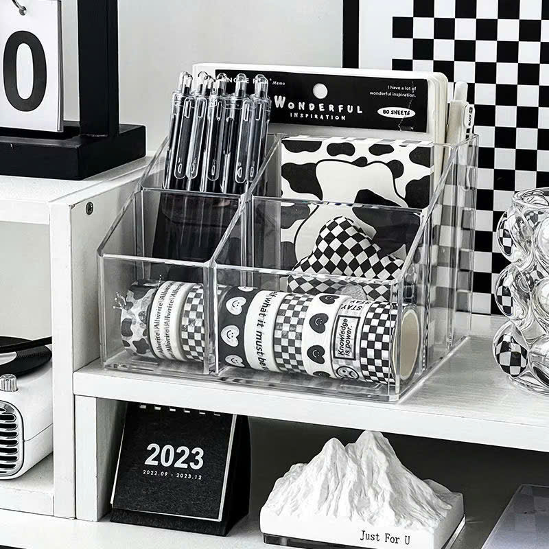 Ống Cắm Bút Trong Suốt 5 Ngăn Đựng Bút Cọ Trang Điểm Decor Bàn Học - Tiện Lợi, Sang Trọng