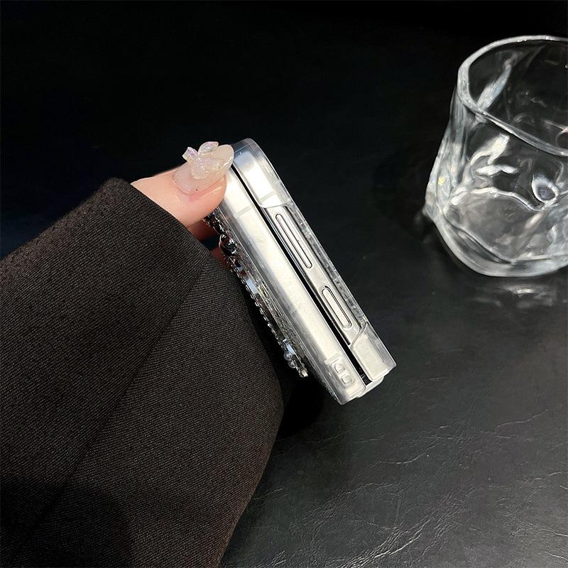 Ốp Lưng Phong Cách Nhẹ Nhàng Kèm Phụ Kiện Xinh Xắn cho Samsung Z FLIP 6 / Z FLIP 5 - Chất liệu : viền nhựa cứng , mặt lưng bọc simili ánh nhũ nhẹ