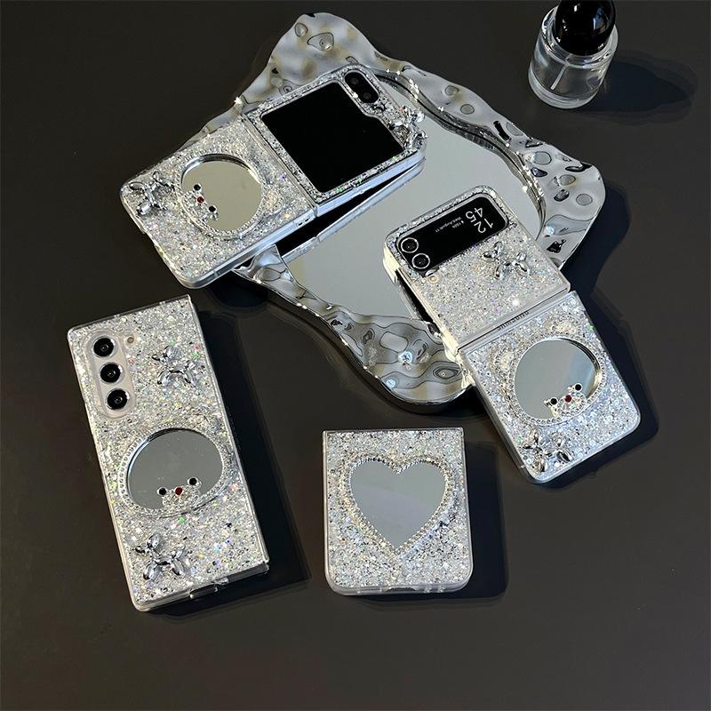 Ốp Lưng Nhựa Cứng Đính Gương Soi Trang Điểm Cho Samsung Z FLIP 6 / Z FLIP 5 - Chất liệu : viền nhựa cứng mờ - Mặt lưng ép kim tuyến bên trong chắc