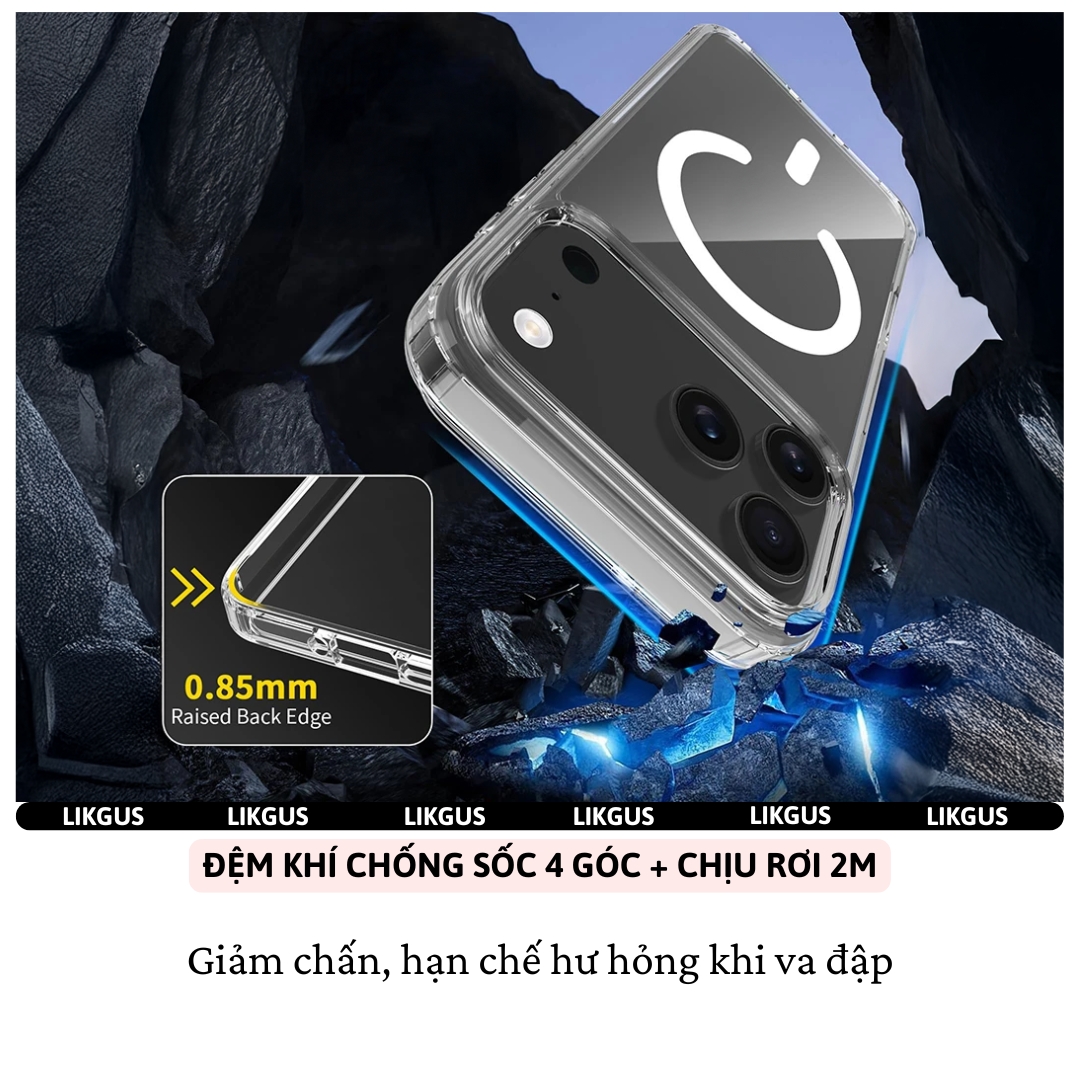 - Tương thích với sạc từ tính (Mag - Safe) - Cho phép sạc không dây nhanh chóng, không cần tháo ốp – tiện lợi trong mọi tình huống sử dụng. - Bảo vệ toàn