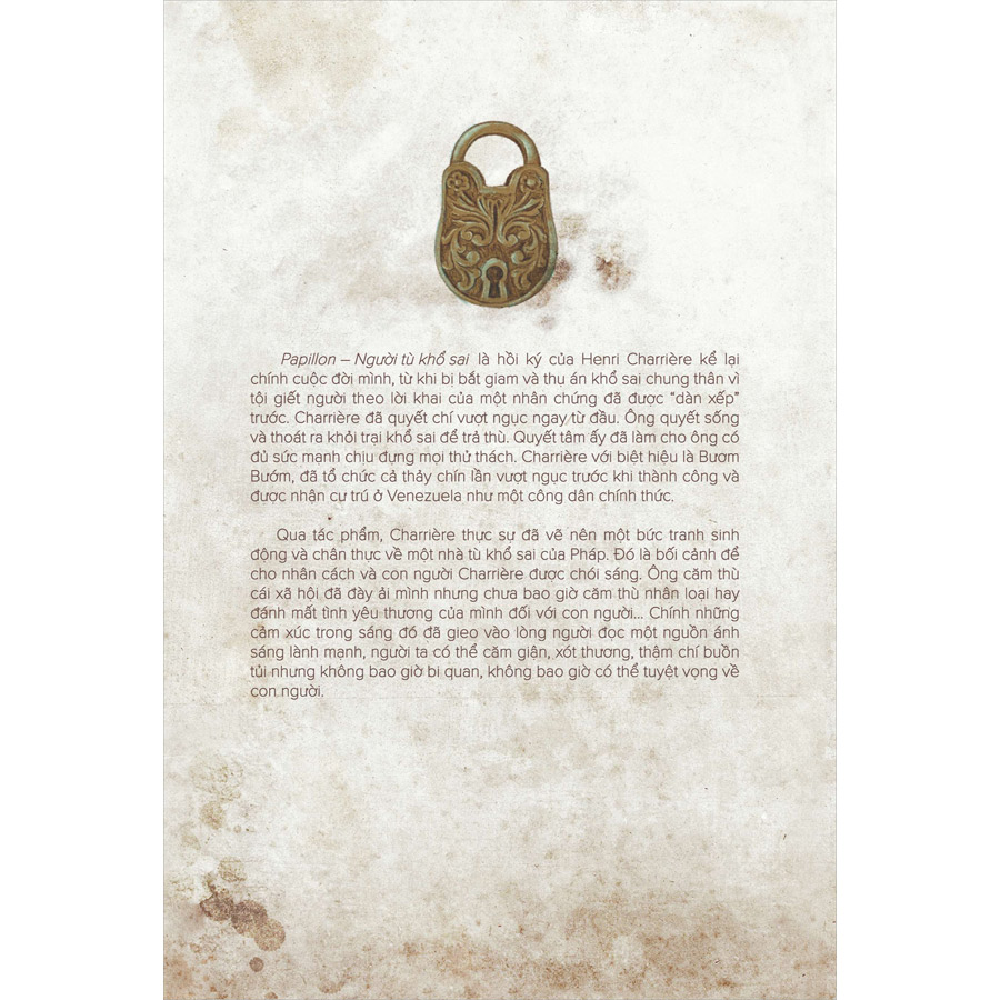 Papillon Người Tù Khổ Sai là một thiên hồi kí của Henri Charrière kể lại chính cuộc đời mình, về hành trình từ khi bị bắt giam và xử án đầy khổ sai chung thân vì tội giết người theo lời khai của một nhân chứng đã được “dàn xếp” trước. Charrière đã quyết chí vượt ngục ngay từ đầu. Ông quyết sống và ra khỏi trại khổ sai để trả thù. Quyết tâm ấy đã làm cho ông có đủ sức mạnh chịu đựng mọi thử thách.