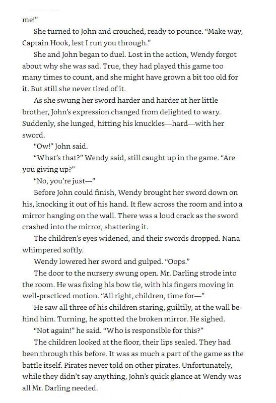 Once in Neverland, the children plunge headfirst into adventure, encountering Peter’s rival, Captain Hook, and his dangerous pirate crew. But as they team up with Peter’s loyal Lost Boys and the powerful Tiger Lily to match wits and swords with Hook, Wendy wonders if there is more to Peter’s story--and growing up--than she first imagined . . . and if uncovering those secrets might be the key to saving Neverland and finding herself.