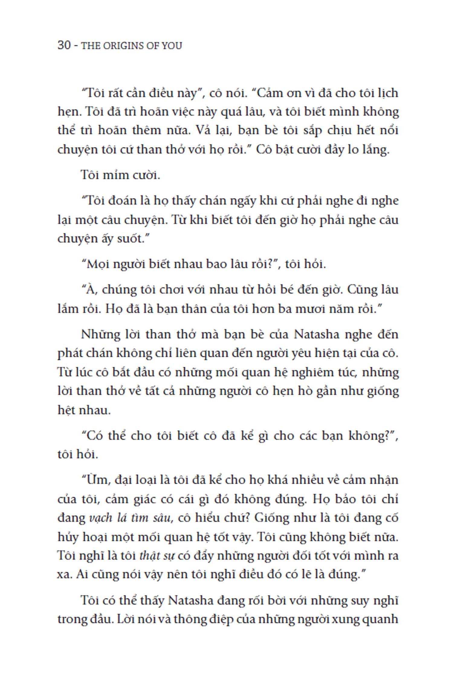 Qua từng chương sách, Vienna Pharaon sẽ dẫn dắt chúng ta khám phá từng loại trong số các vết thương do câu chuyện cội nguồn gây ra. Đồng thời, cô cũng hướng dẫn bạn chữa lành vết thương của m.ình với phương pháp Chữa lành tận gốc gồm bốn bước: xác định vết thương, bằng chứng về nó, nỗi tiếc thương đi kèm với nó, và cuối cùng là thực hiện những thay đổi lâu dài để không lặp lại những khuôn mẫu mà bạn vẫn cố phá vỡ trong các mối quan hệ ở tuổi trưởng thành.
