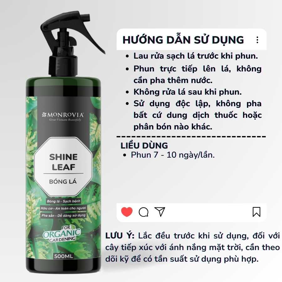 ✨Phân bón trong nhà BÓNG LÁ MONROVIA hữu cơ giúp lá xanh mướt, bóng cho cây cảnh dung tích 500ml