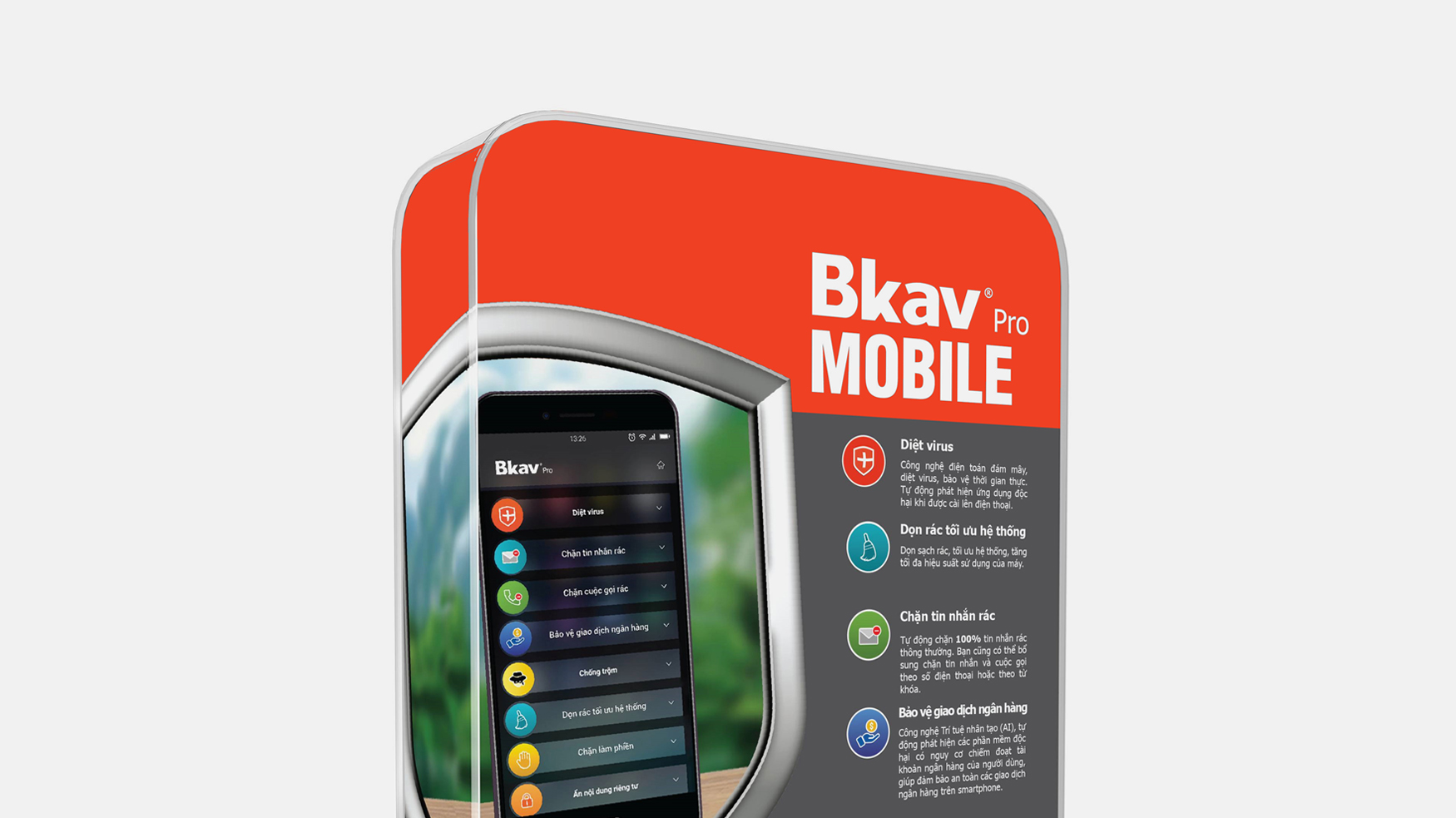 Bkav Pro Mobile được trang bị công nghệ Trí tuệ nhân tạo (AI), tự động phát hiện các phần mềm độc hại có nguy cơ chiếm đoạt tài khoản ngân hàng của người dùng, giúp đảm bảo an toàn các giao dịch ngân hàng trên smartphone. Ngoài tính năng bảo vệ giao dịch ngân hàng, một điểm nổi bật của Bkav Pro Mobile là khả năng chặn tin rác với tỷ lệ lên tới 100%. Với công nghệ quét thông minh (SmartScan) Bkav Pro Mobile nhận diện được cả những dòng virus mới mà không cần cập nhật mẫu nhận diện. Sản phẩm cũng được trang bị các công nghệ chặn cuộc gọi không mong muốn, chống trộm, tìm vị trí điện thoại, sao lưu danh bạ, tin nhắn và cuộc gọi cùng nhiều tính năng, tiện ích khác.