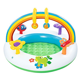 - Là một trong những sản phẩm bán chạy trong dòng bể phao dành cho bé. Thiết kế dạng hình cầu vồng có nhiều màu sắc đẹp mắt, có nhiều chi tiết trên thành phao gây chú ý ham thích khám phá của trẻ.